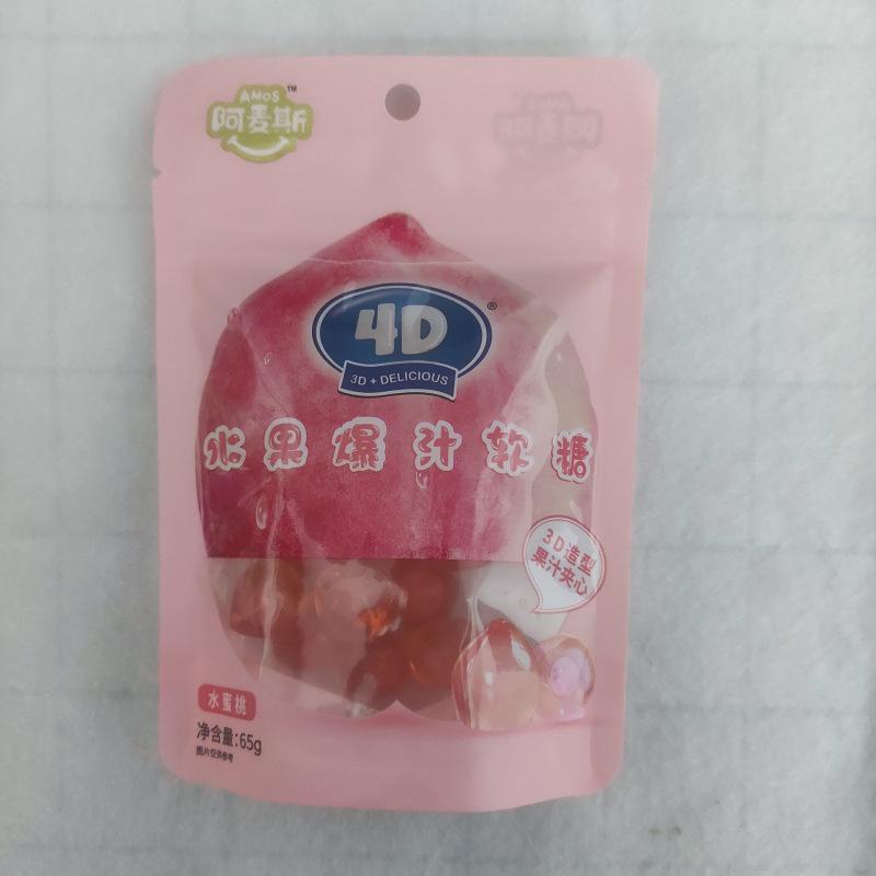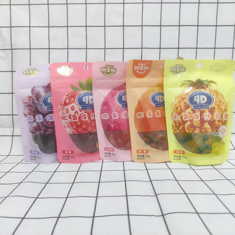 Amace 4D palomitas de maíz de fruta caramelo blando palomitas de maíz de durazno fruta corazón jugo caramelo blando 65 g/bolsa caramelo de Año Nuevo