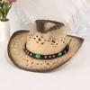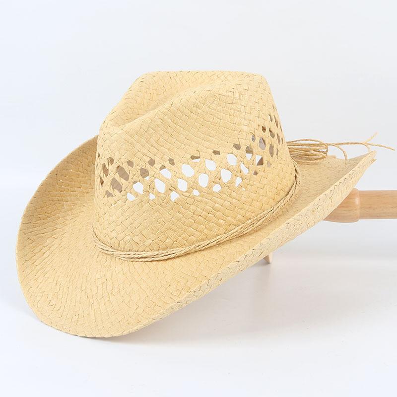 Sombrero Cowboy Occidental Transfronterizo Sombrero de Paja Panamá Sombrero de Jazz Recortado Sombrero de Sol para Viaje de Primavera Verano Sombrero de Playa Marítimo