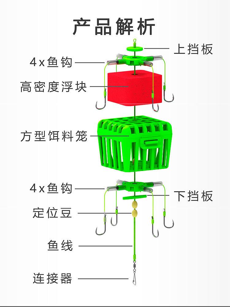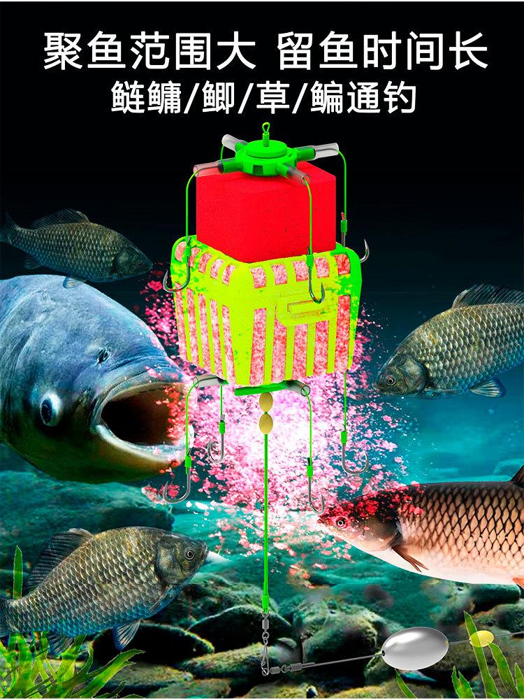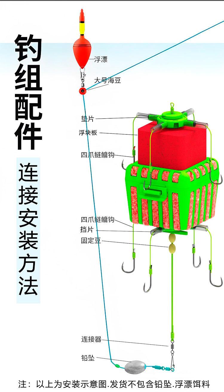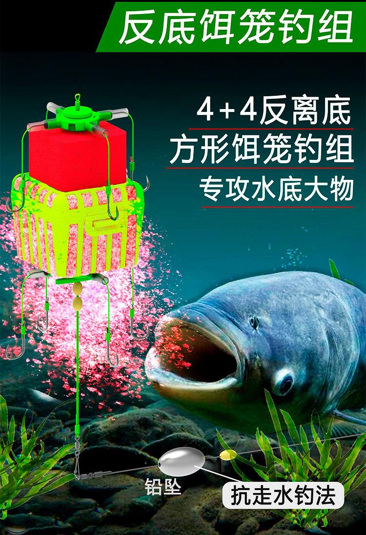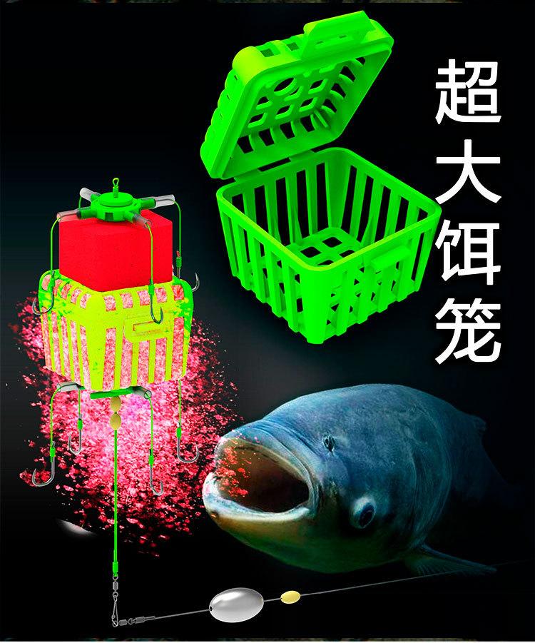 Cebo jaula anzuelo carpa plateada y carpa cabezona anti-fondo grupo línea pesca de fondo caña de mar flotador anzuelo de aleta grupo de pesca flotador cuadrado traje de placa