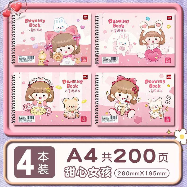 Deli A4 Papel Marcador Cuaderno de Arte para Niños, Grueso Blanco Anti-Sangrado Libro de Dibujo de Acuarela para Estudiantes