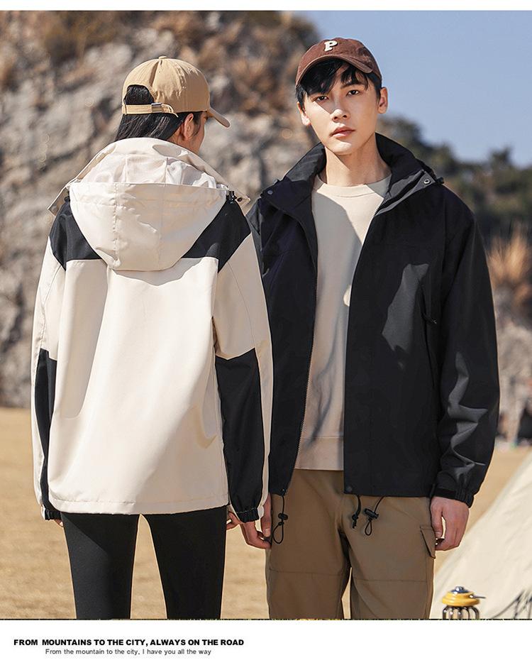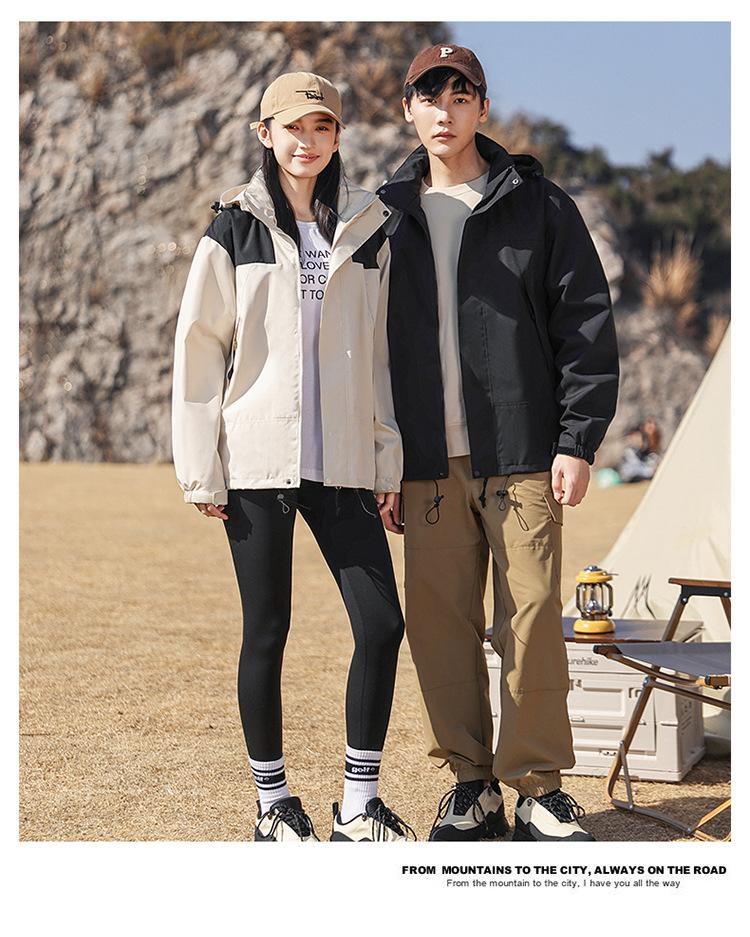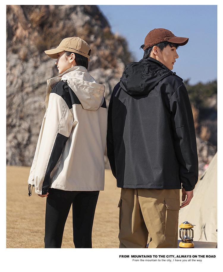 Traje de esquí con forro polar, cortavientos, casual para exteriores, versátil para pareja, chaqueta cortavientos con capucha, abrigo impermeable para montañismo