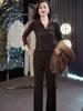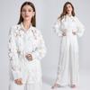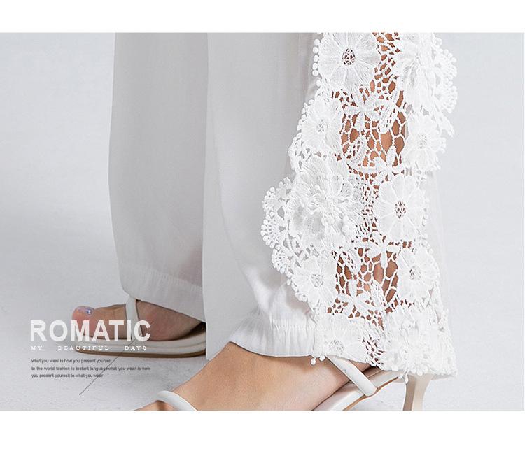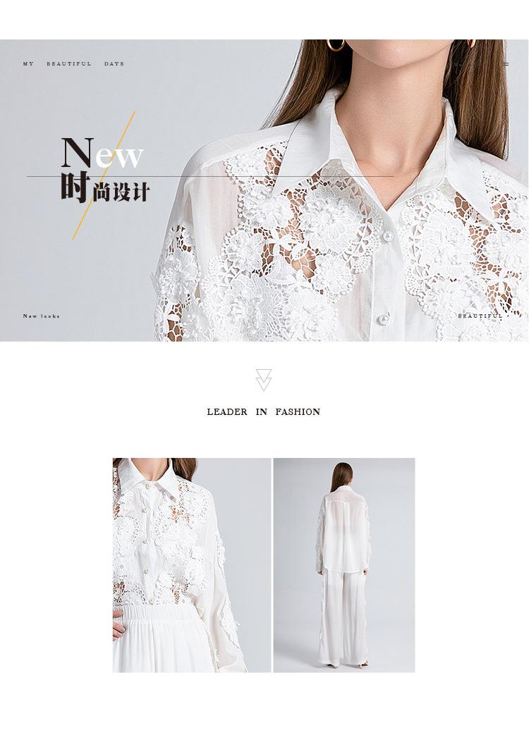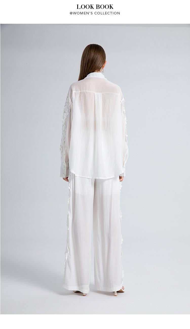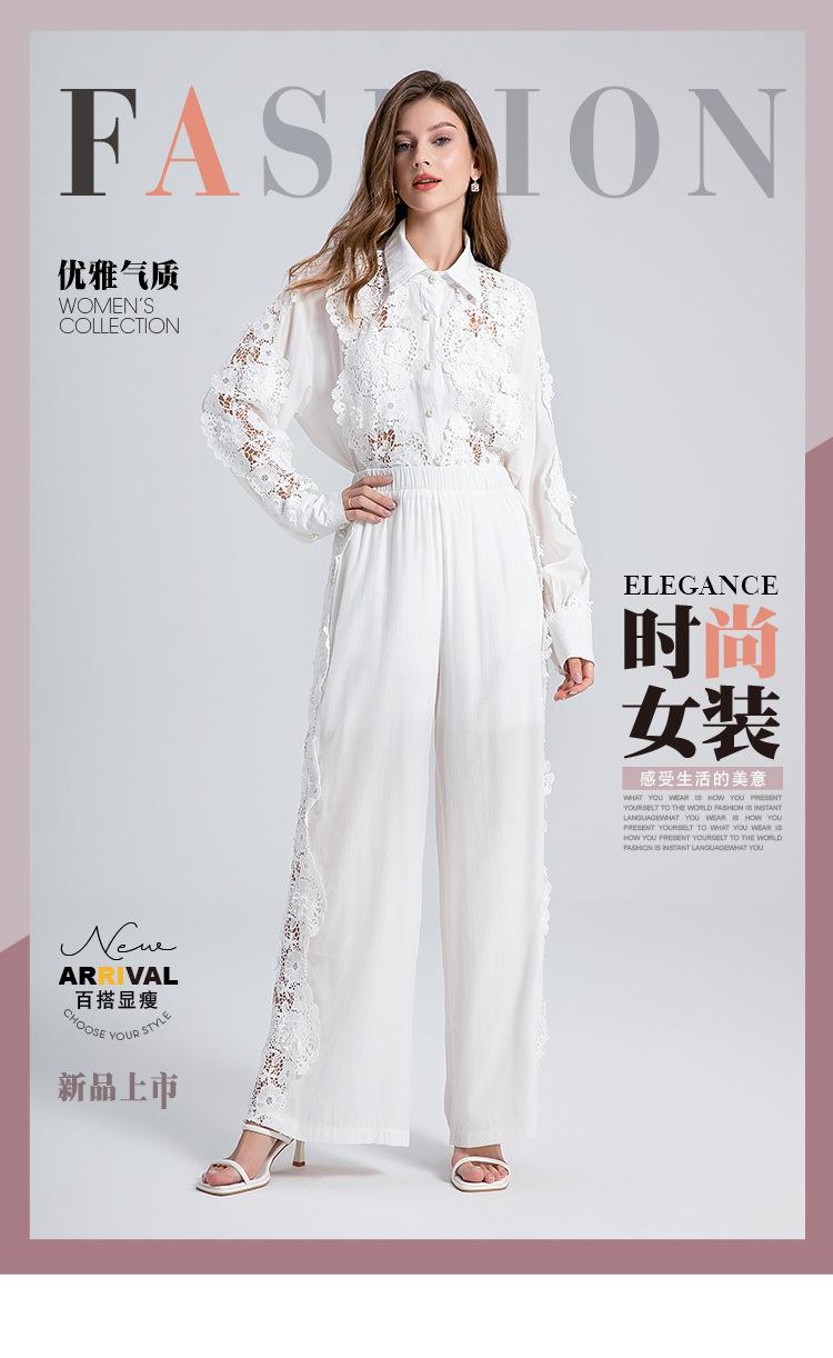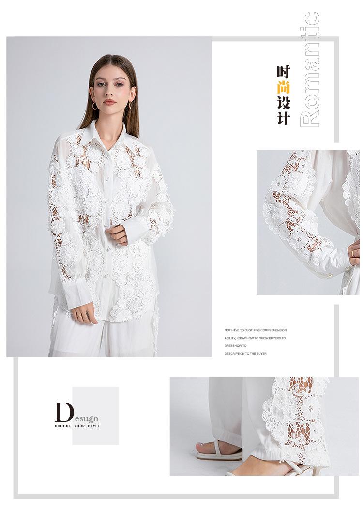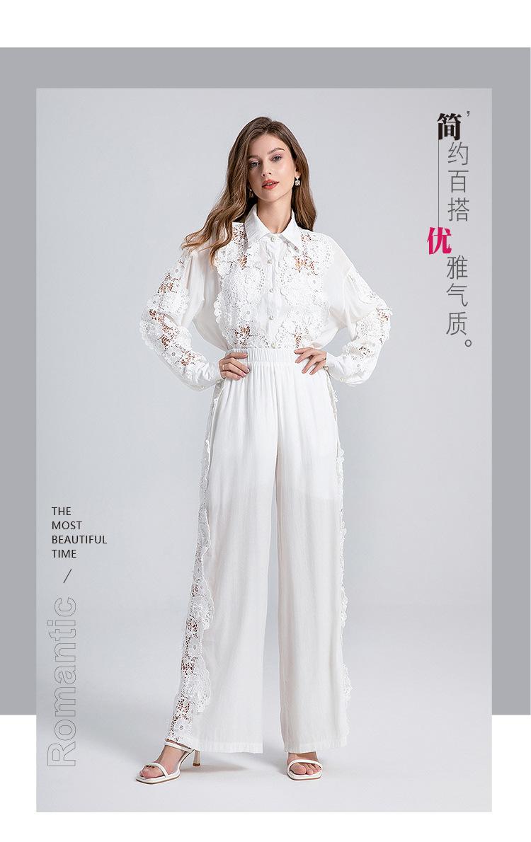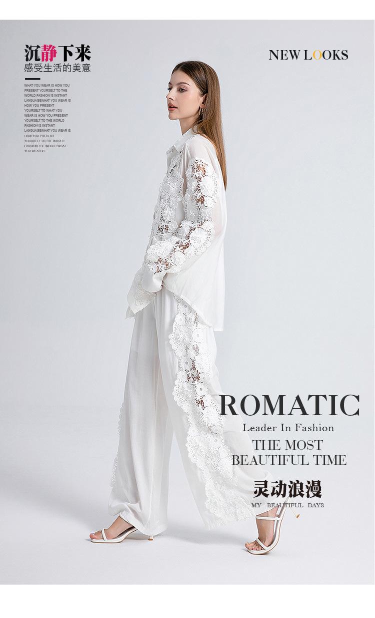 Camisa de Encaje Floral de Lujo Accesible a la Moda de Gama Alta de Manga Larga + Pantalones de Encaje de Cintura Elástica Traje de Dos Piezas