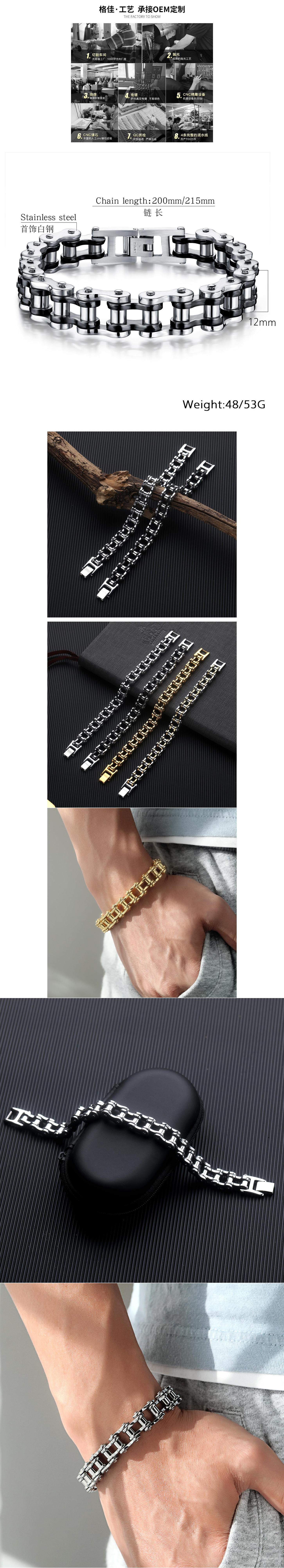 Ventas directas de fábrica pulsera transfronteriza de gran venta pulsera de acero de titanio para hombre personalidad rock cadena de motocicleta pulsera de bicicleta