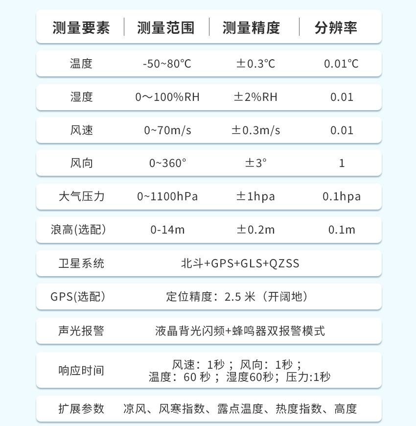 Temperature, humidity, wind speed, average wind speed, maximum wind speed, wind direction, etc