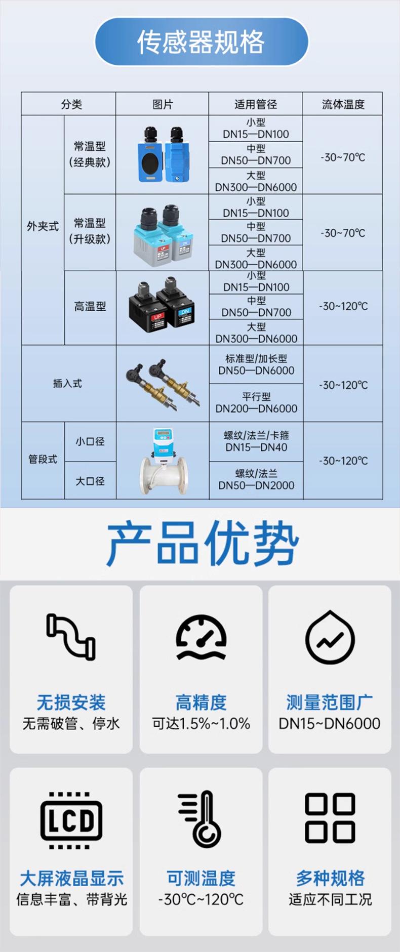 Caudalímetro Ultrasónico JAC-150 Líquido Hidráulico Industria del Agua Split Abrazadera Externa Montado en Pared Transmisión Remota Multicanal Medidor de Calor