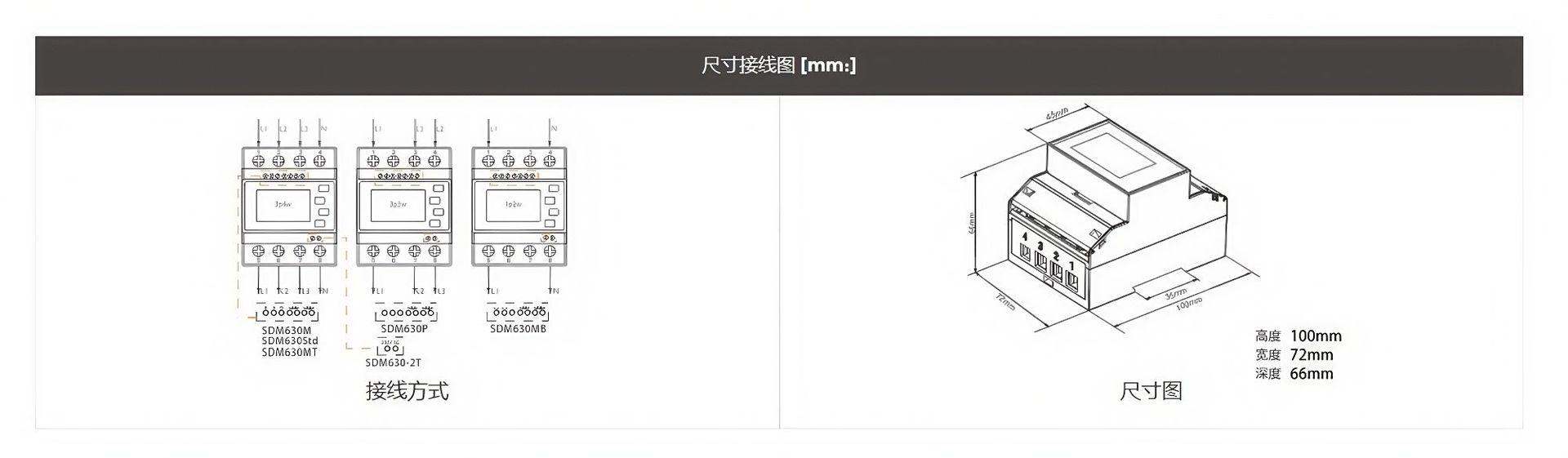 SDM630M tiene 2 salidas de pulso, 1 salida de pulso es ajustable; 1 comunicación RS485 (protocolos de comunicación opcionales: Modbus RTU, DL/T645; tasa de comunicación RS485 hasta 38400bps (tasa más alta personalizable));