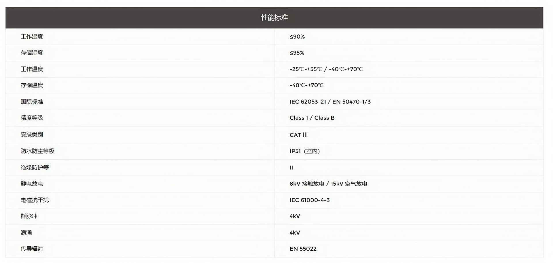 Este medidor tiene buena compatibilidad electromagnética, precisión hasta clase 0.5, y cumple con los estándares internacionales GB/T17215, GB/T15284, GB/T17883 y el estándar de la industria eléctrica DL/T614, IEC62053-21, EN5070-1/3, y ha pasado la certificación MID (Directiva de Instrumentos de Medición de la UE) B+D. Se utiliza ampliamente en campos como la energía solar fotovoltaica y la medición de carga de estaciones de carga.
