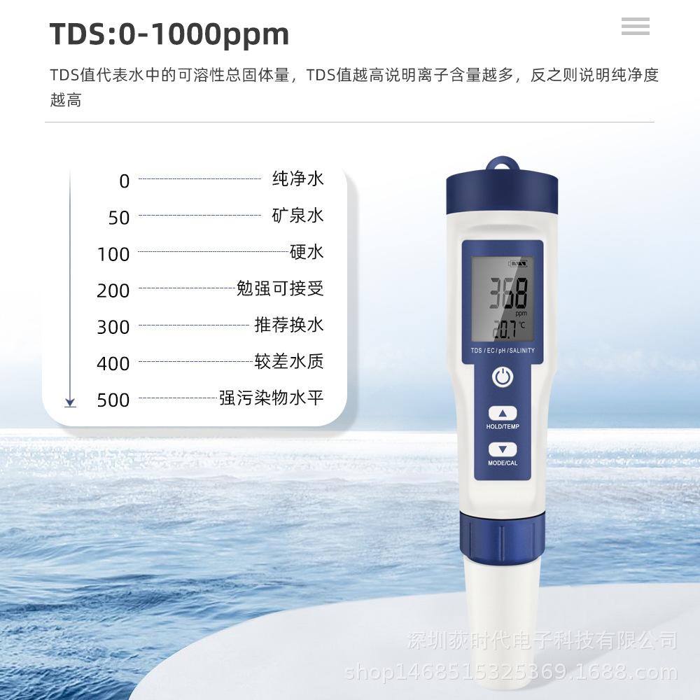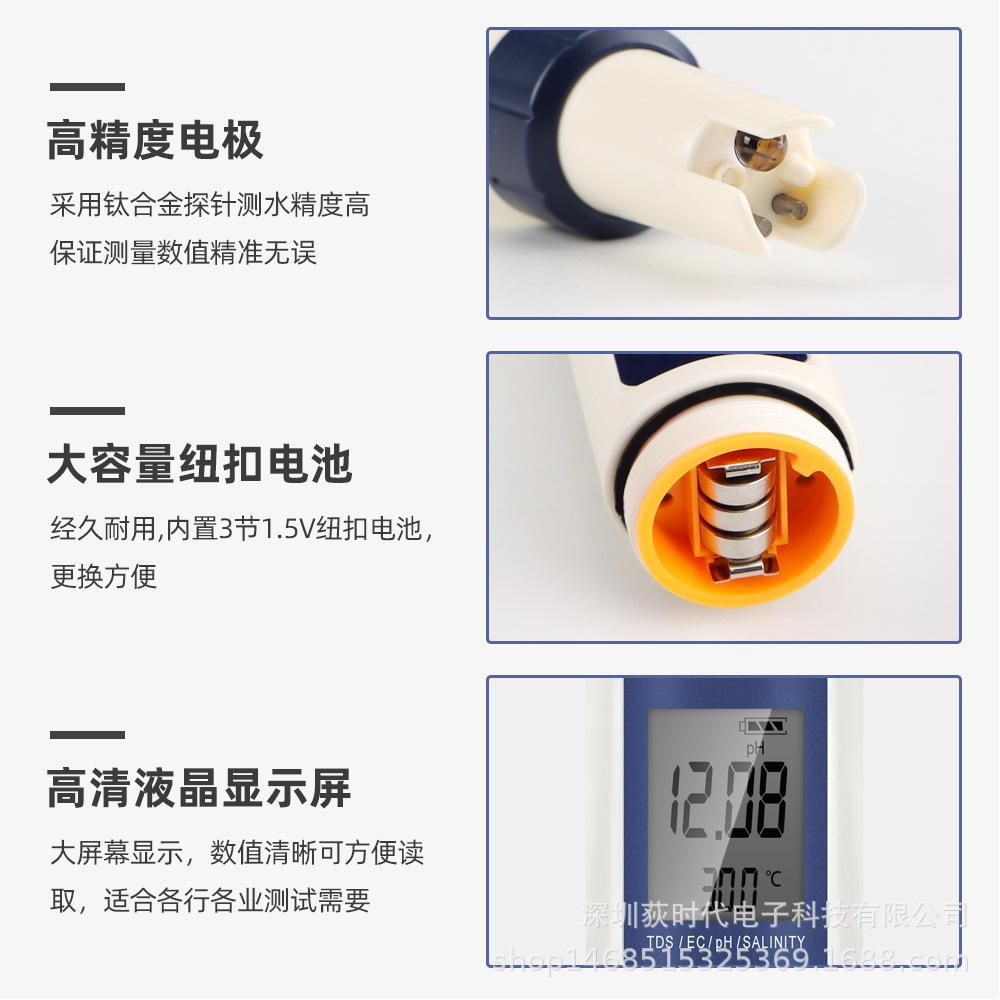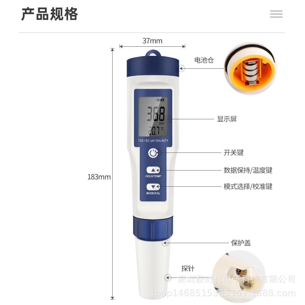El EZ-9909 es un medidor multifuncional de calidad del agua que mide pH, solubilidad de TDS, conductividad de CE, salinidad y temperatura. Es un medidor impermeable de calidad del agua de alto rendimiento, con diseño en forma de bolígrafo, rápida estabilidad numérica y resultados precisos.