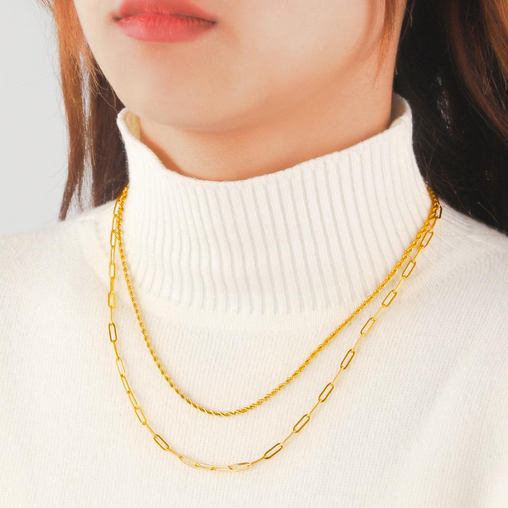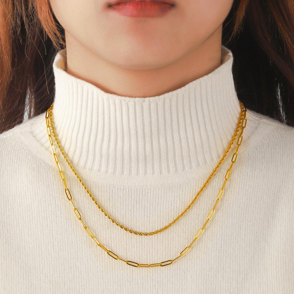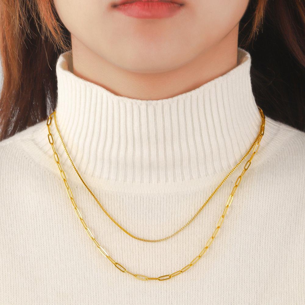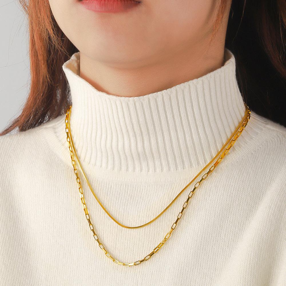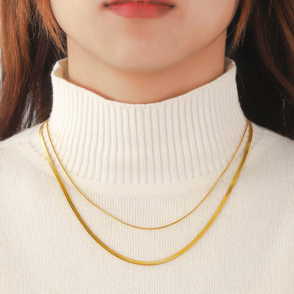 Compra Collar Apilado de Doble Capa de Acero Inoxidable Europeo y Americano para Damas Chapado en Oro Real de 18K Cadena de Hueso de Serpiente Versátil Cadena para Clavícula Collar de Acero de Titanio al por mayor en Joom.pro