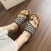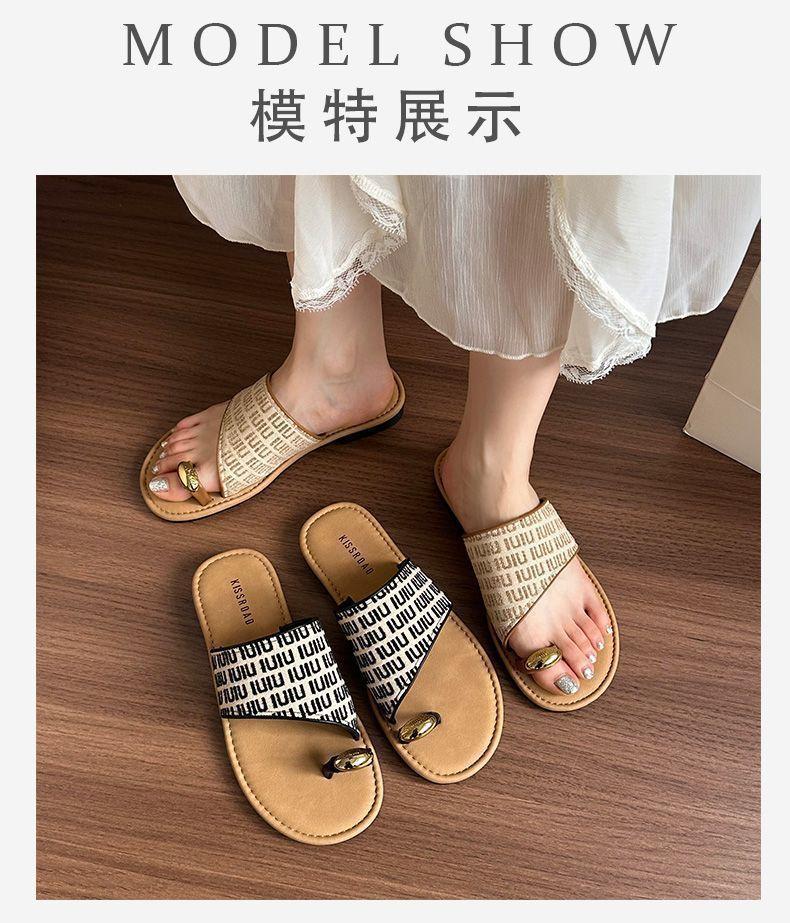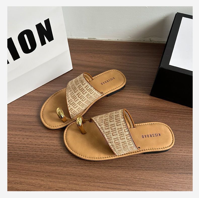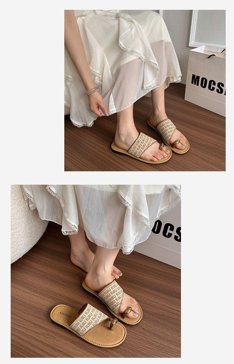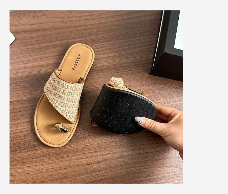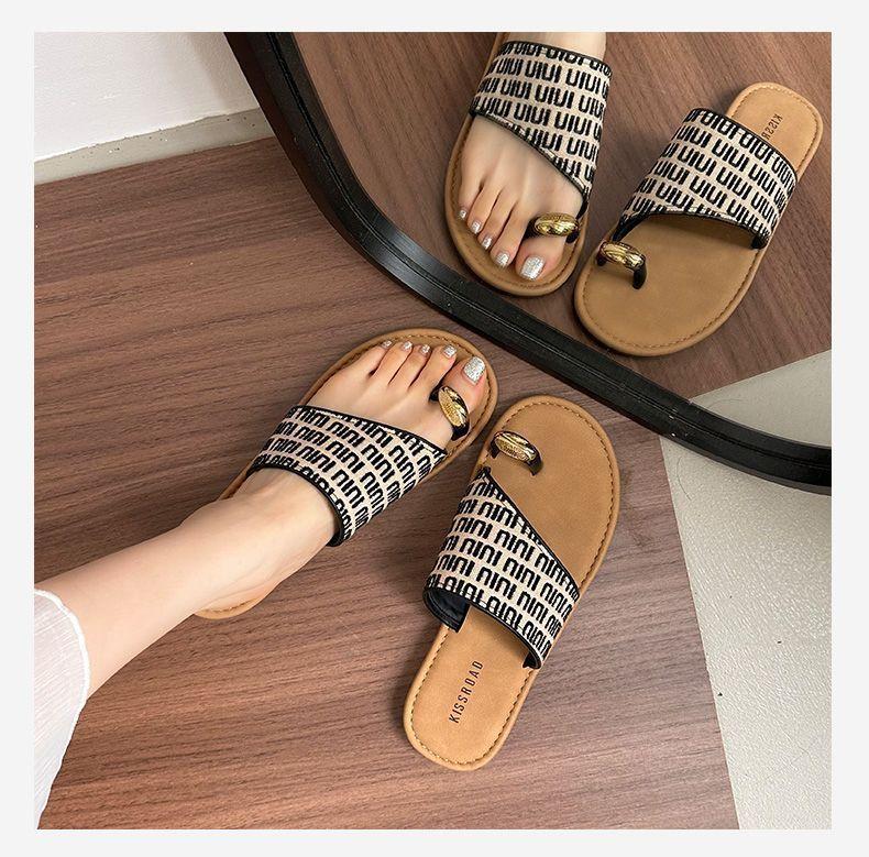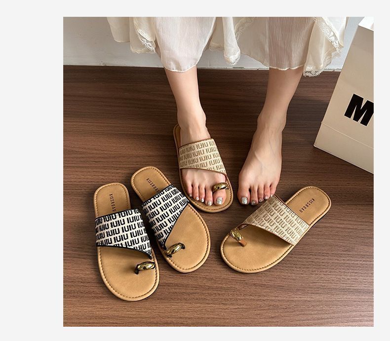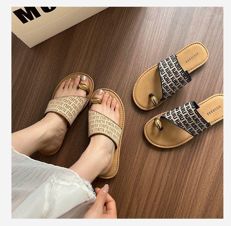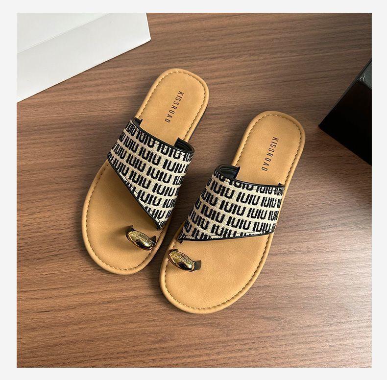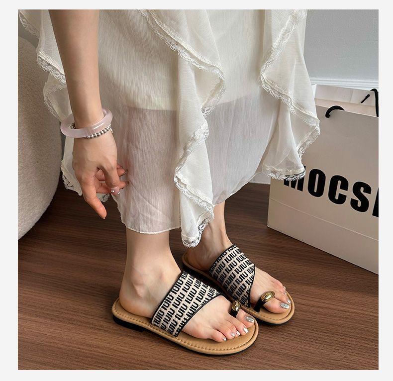 Zapatillas de Moda Retro con Lazo para el Dedo para Mujer 2025 Nuevo Verano para Exterior Estilo Coreano Suela Suave Tacón Plano Sandalias de Playa para Mujer