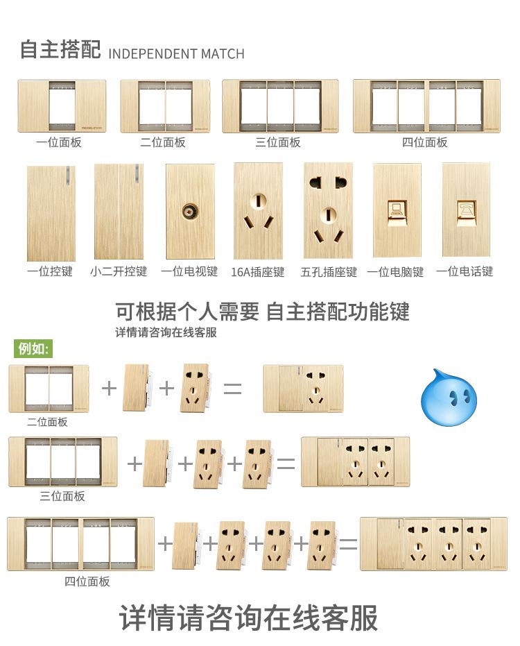 One-switch dual control, One-switch multi-control, Two-open and double-control, Five-hole socket, Air conditio...