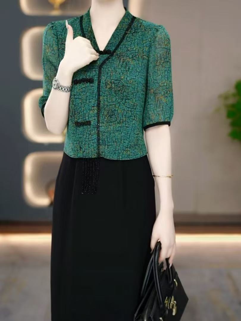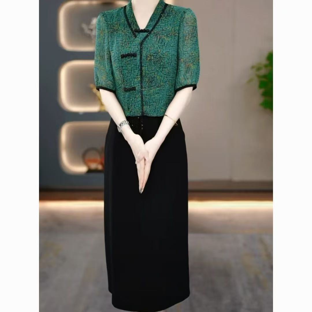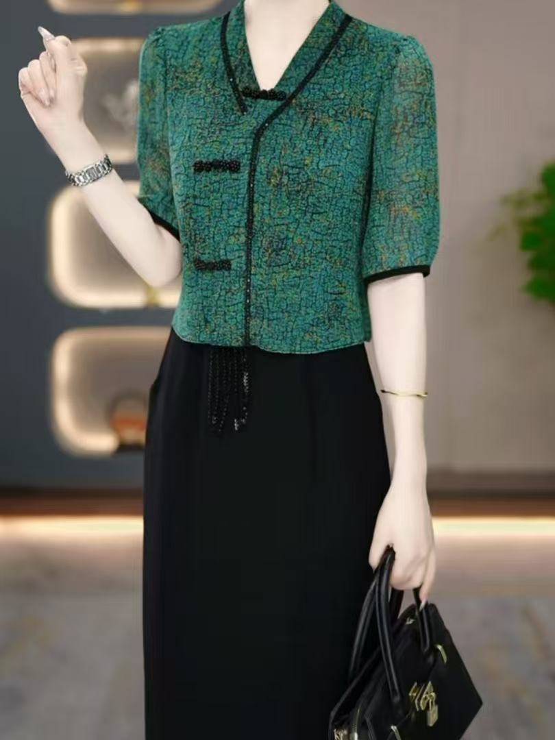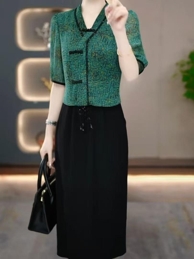 Moda de Alta Gama, Falda Versátil Floral Falsa de Dos Piezas para Mujer 2025 Primavera y Verano Nuevo Vestido Adelgazante para Mujer