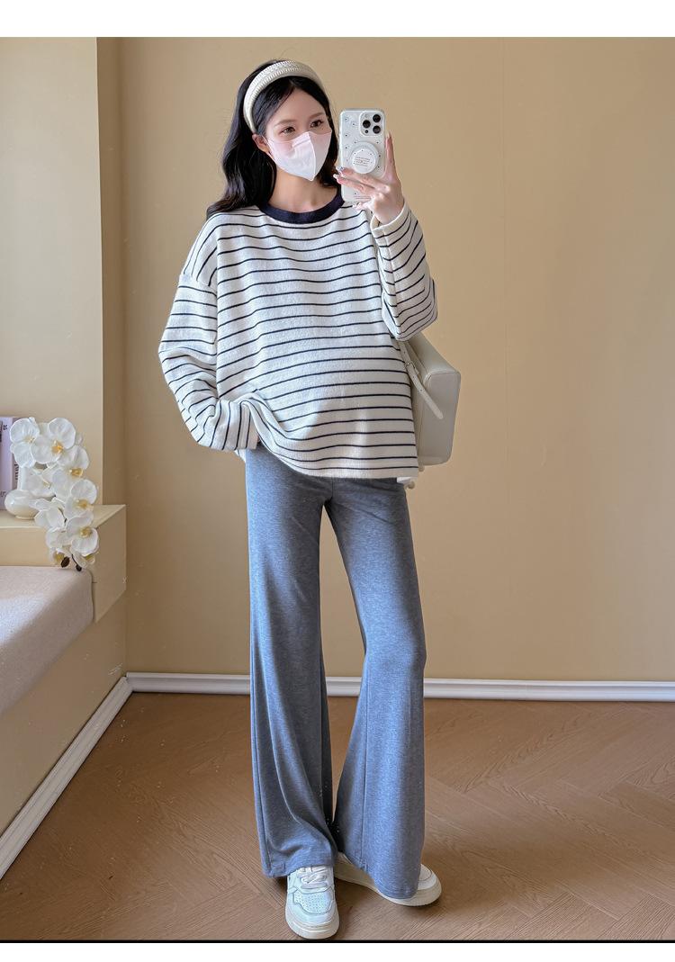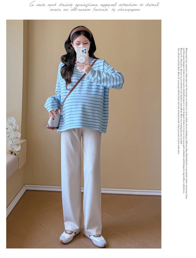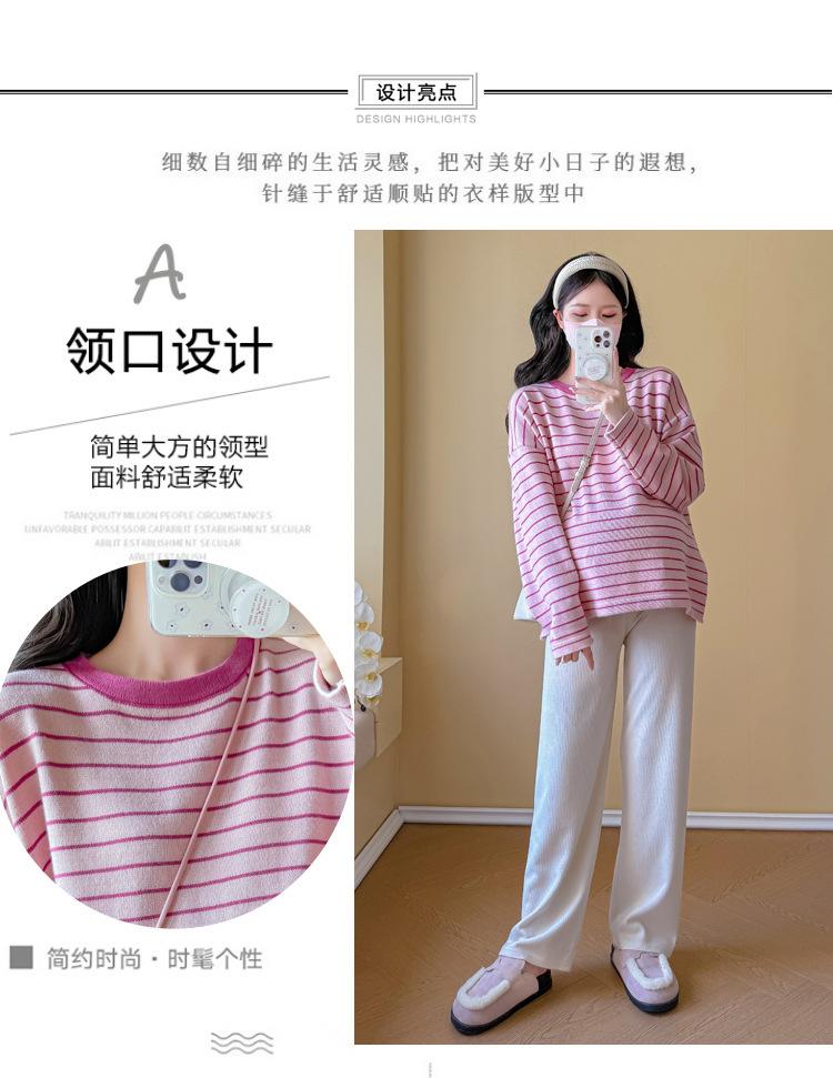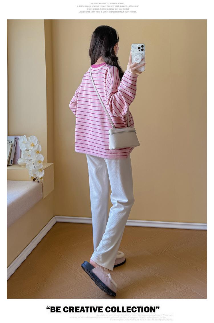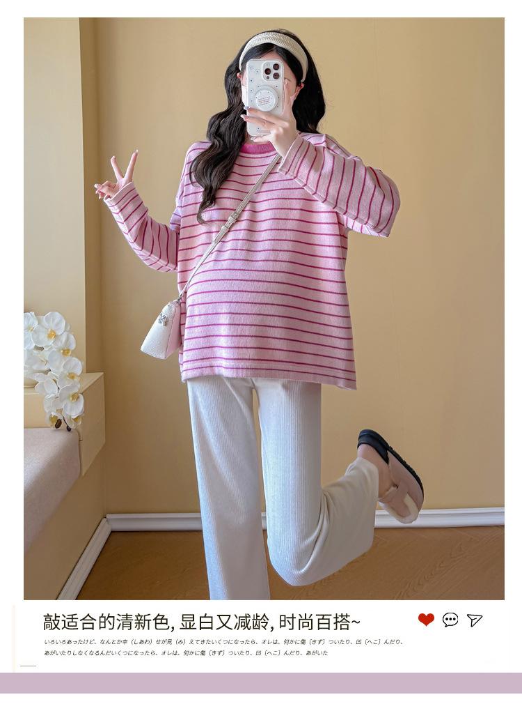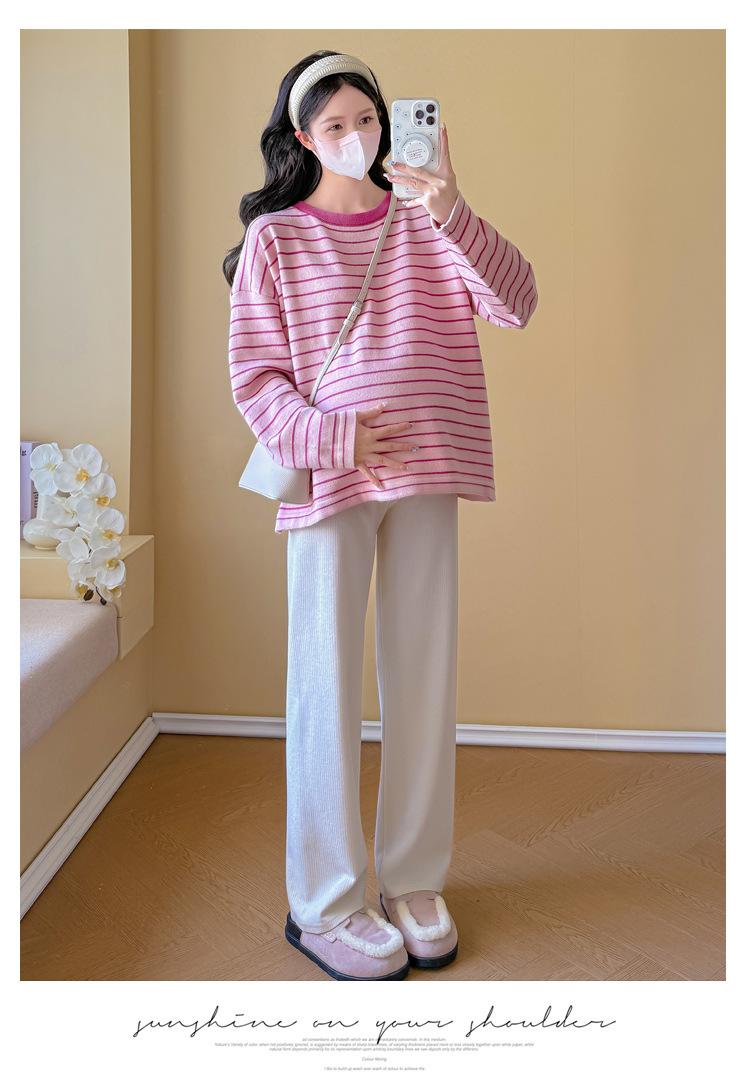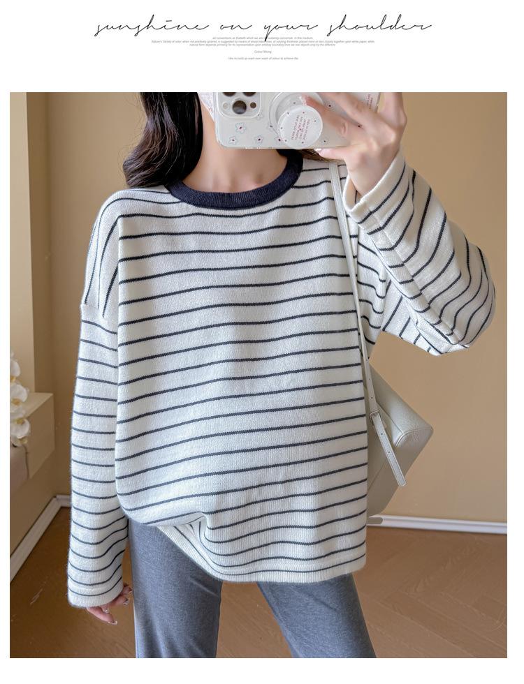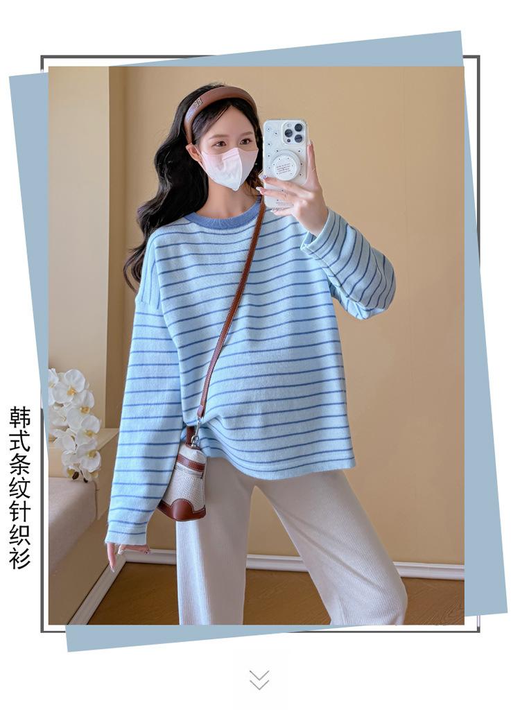 Ropa de Maternidad Suéter Rayado de Cuello Redondo Otoño e Invierno Nuevo Estilo Perezoso Casual Suelto Adelgazante Versátil Jersey Top de Maternidad