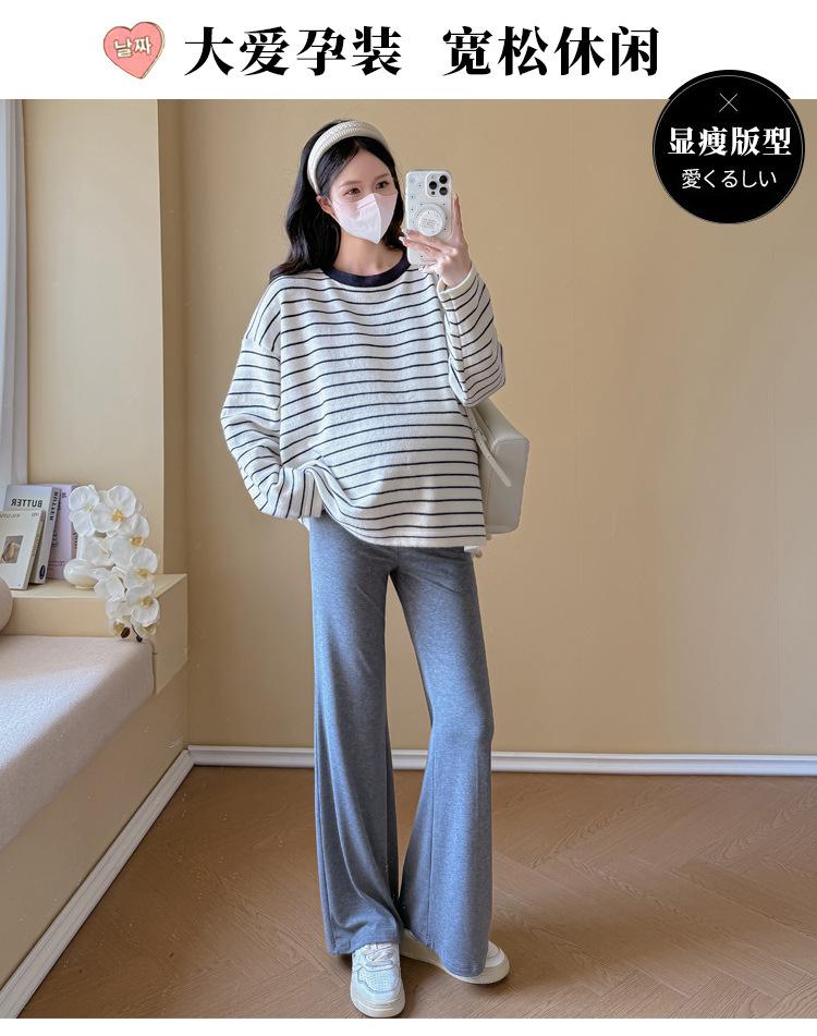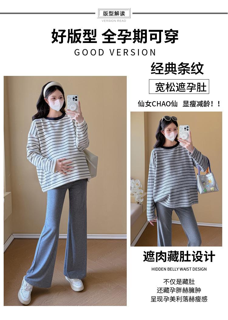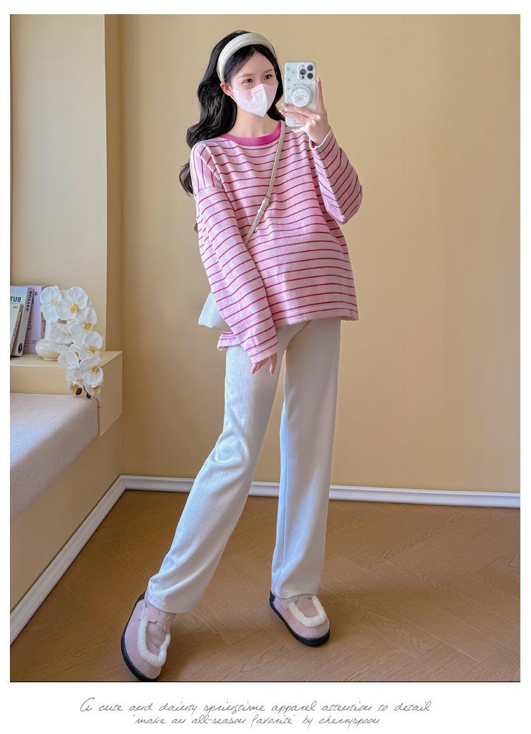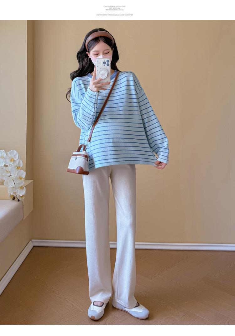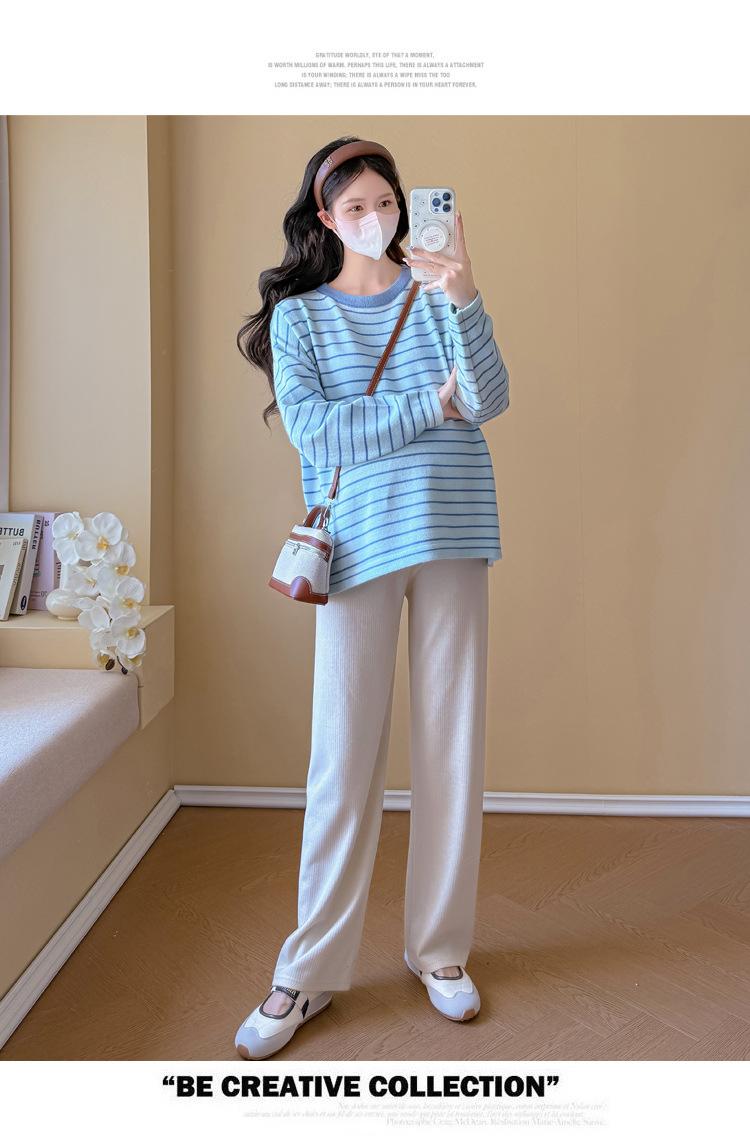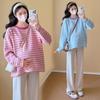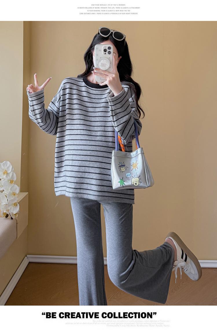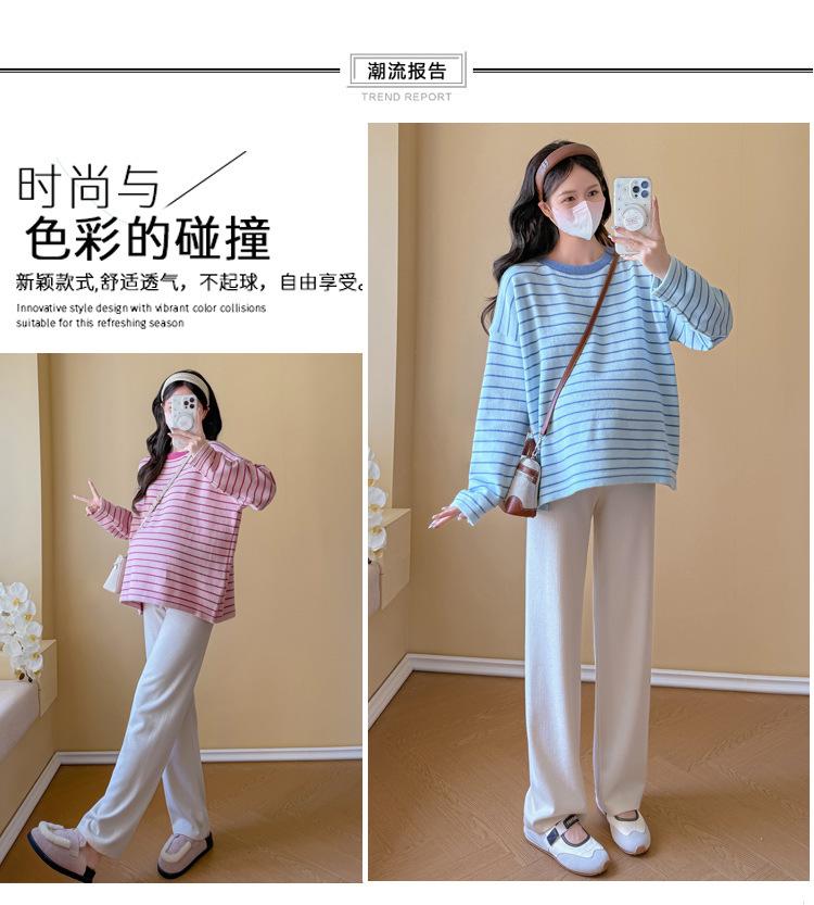 Ropa de Maternidad Suéter Rayado de Cuello Redondo Otoño e Invierno Nuevo Estilo Perezoso Casual Suelto Adelgazante Versátil Jersey Top de Maternidad