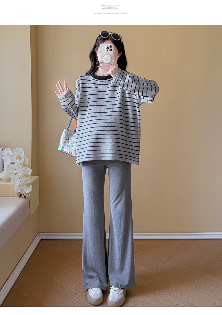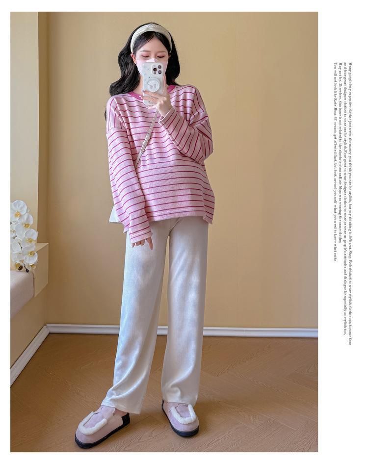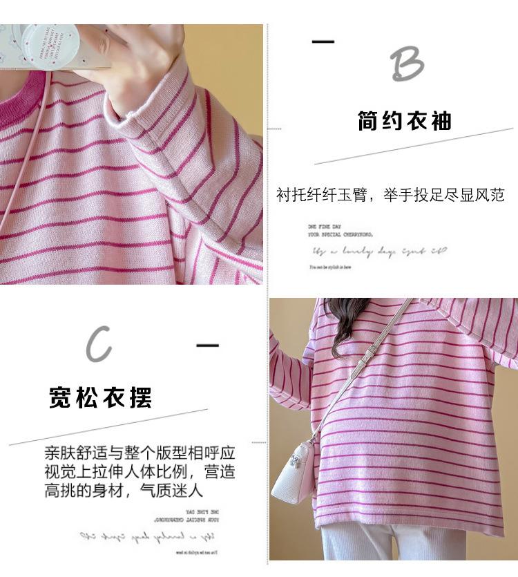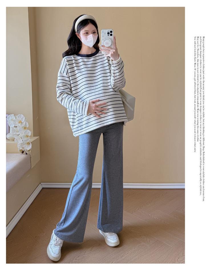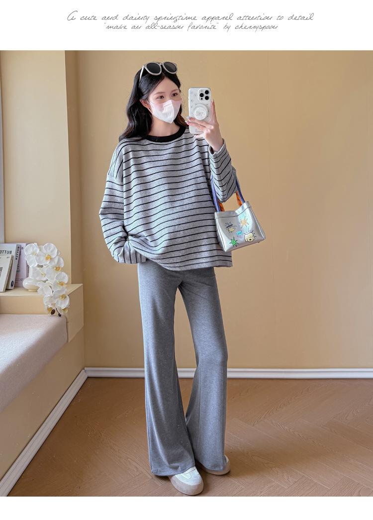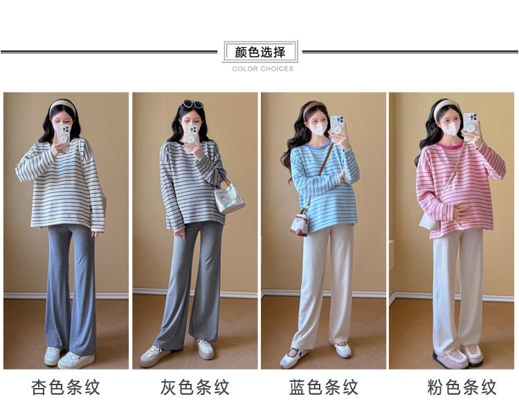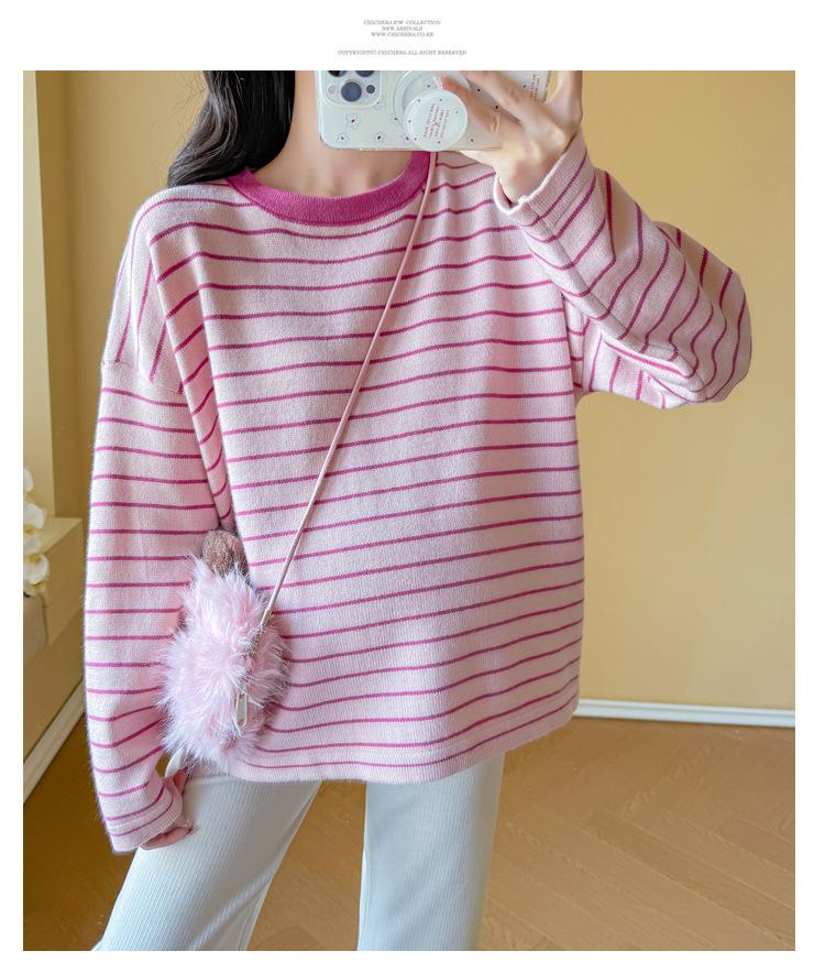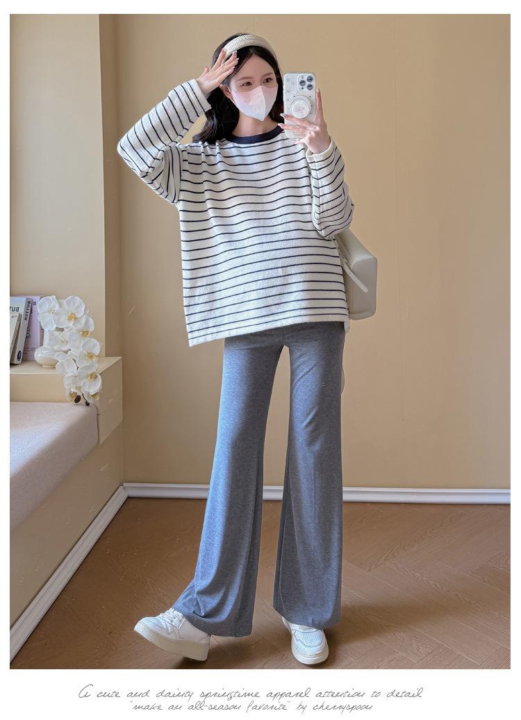 Ropa de Maternidad Suéter Rayado de Cuello Redondo Otoño e Invierno Nuevo Estilo Perezoso Casual Suelto Adelgazante Versátil Jersey Top de Maternidad