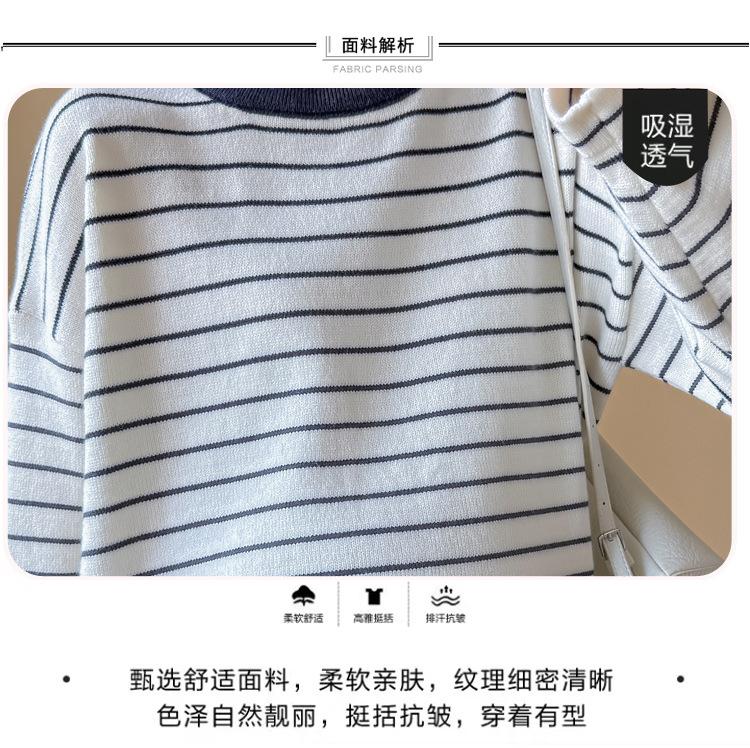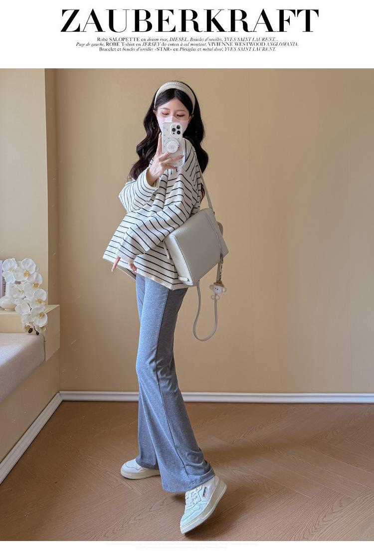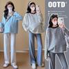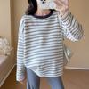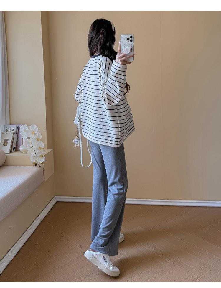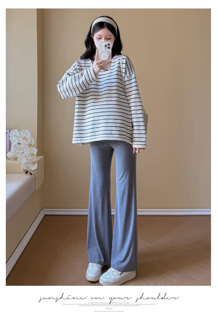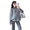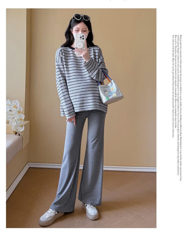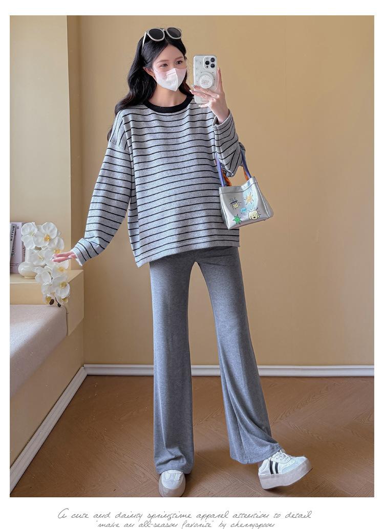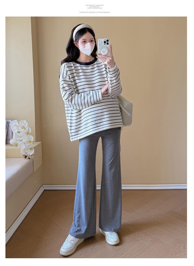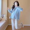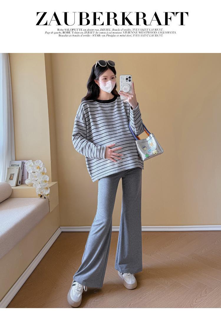 Ropa de Maternidad Suéter Rayado de Cuello Redondo Otoño e Invierno Nuevo Estilo Perezoso Casual Suelto Adelgazante Versátil Jersey Top de Maternidad