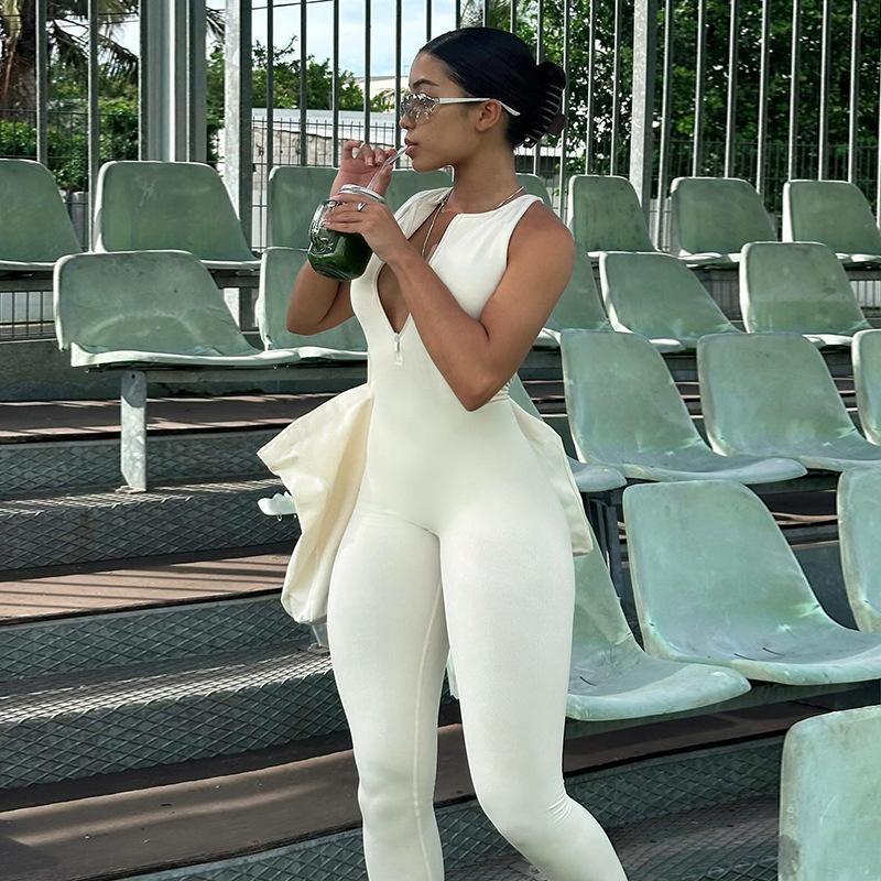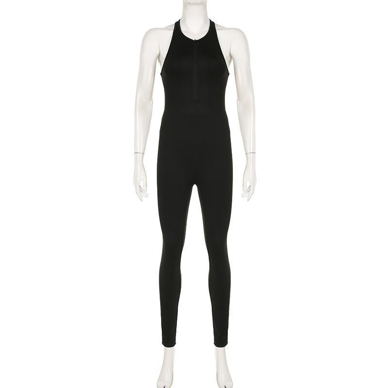 2025 Primavera/Verano Nueva Moda para Mujer Simple Sexy Adelgazante Color Sólido Tendencia Cierre Deportivo Sin Mangas Mono
