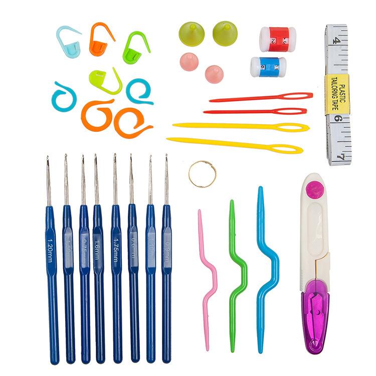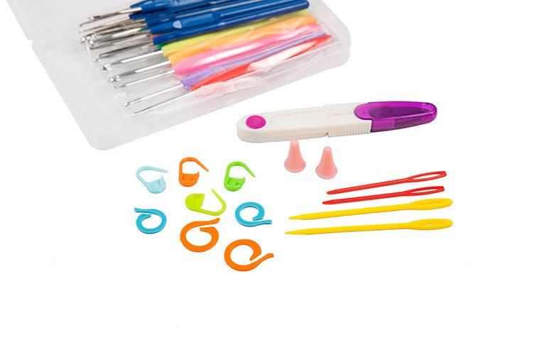 El paquete incluye: 1 x juego de ganchillos y herramientas pequeñas