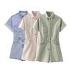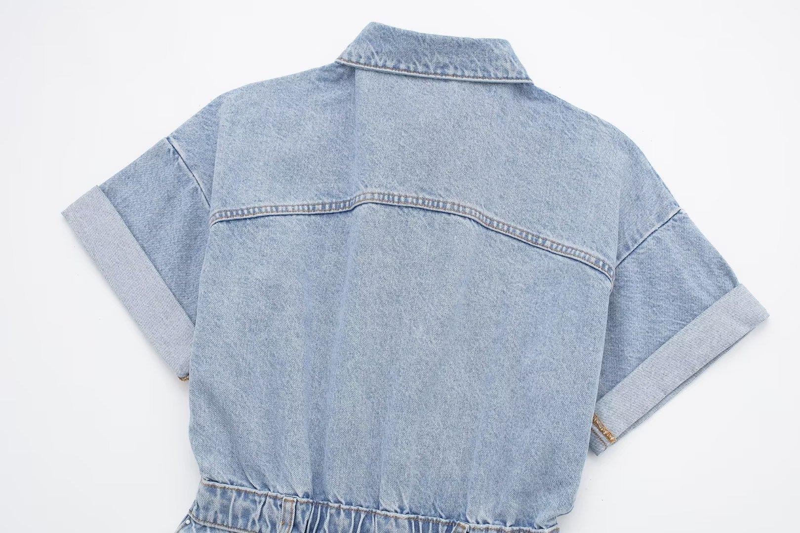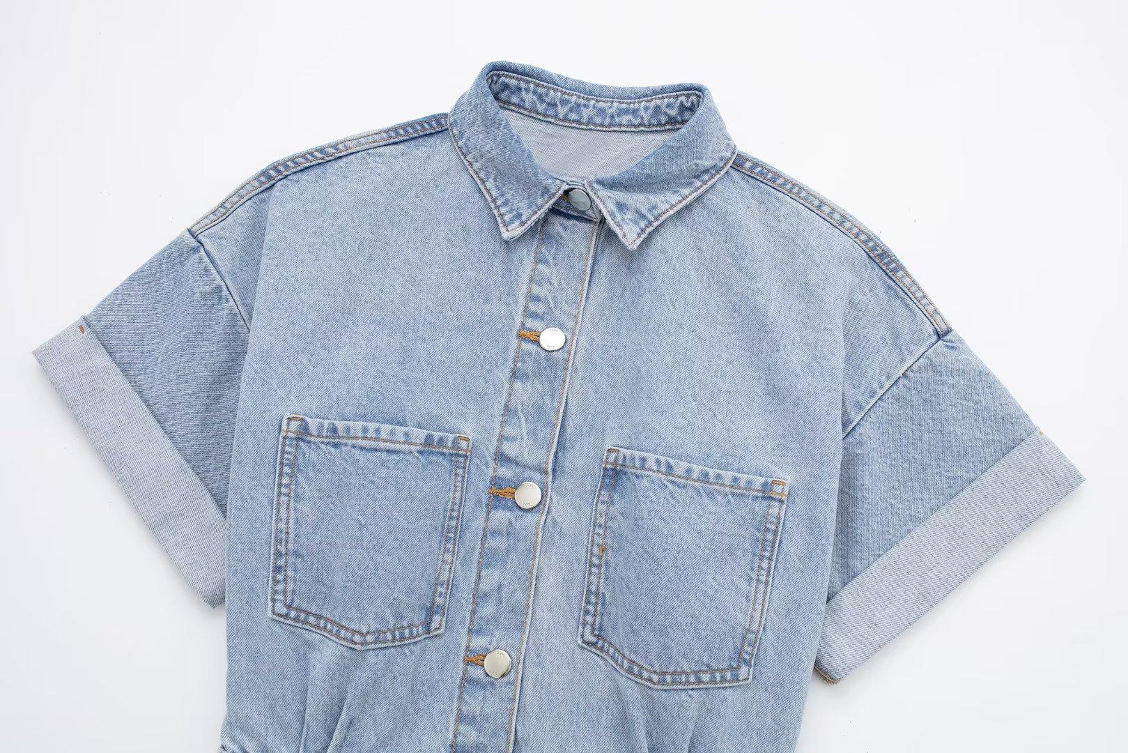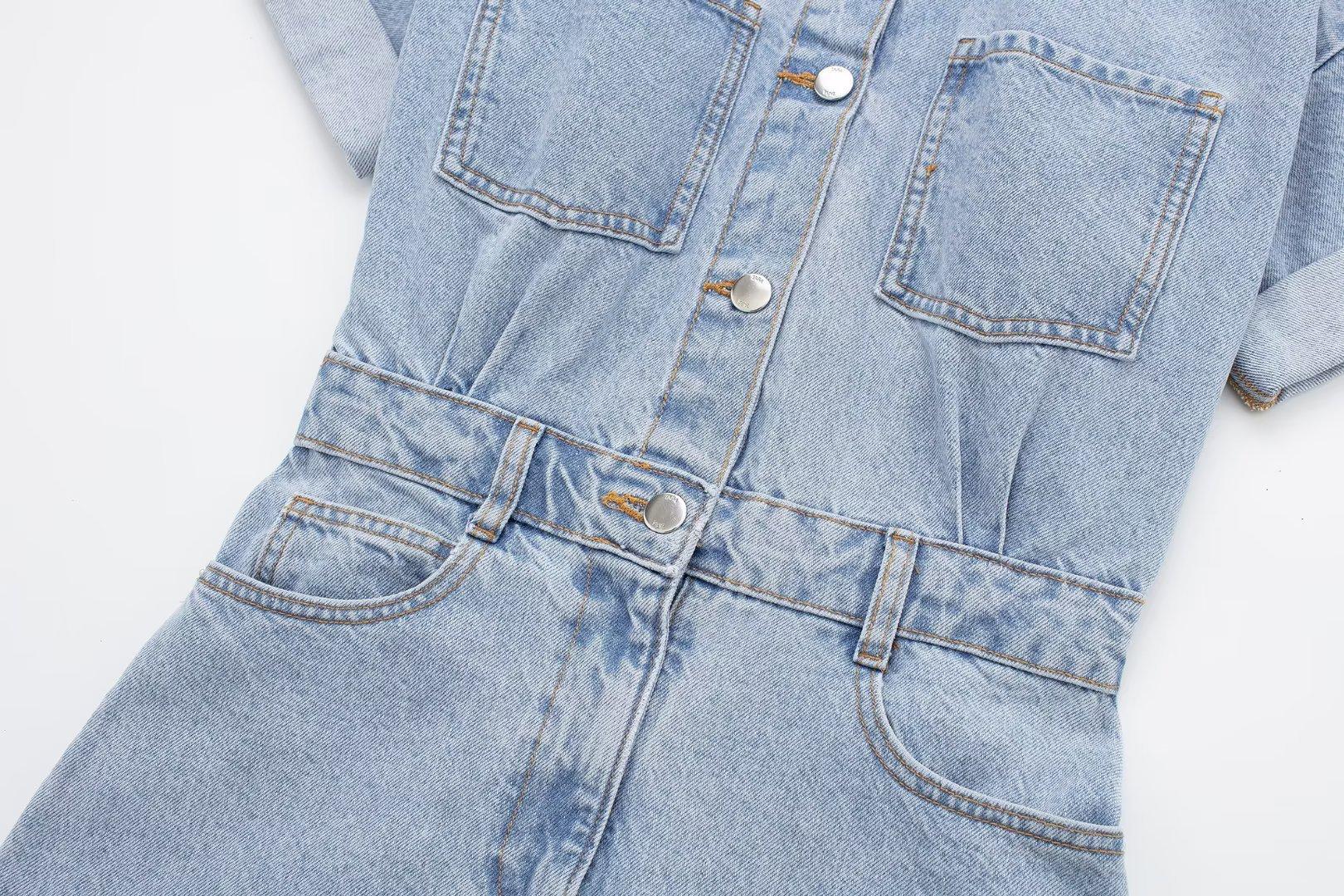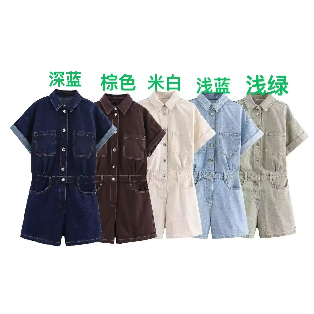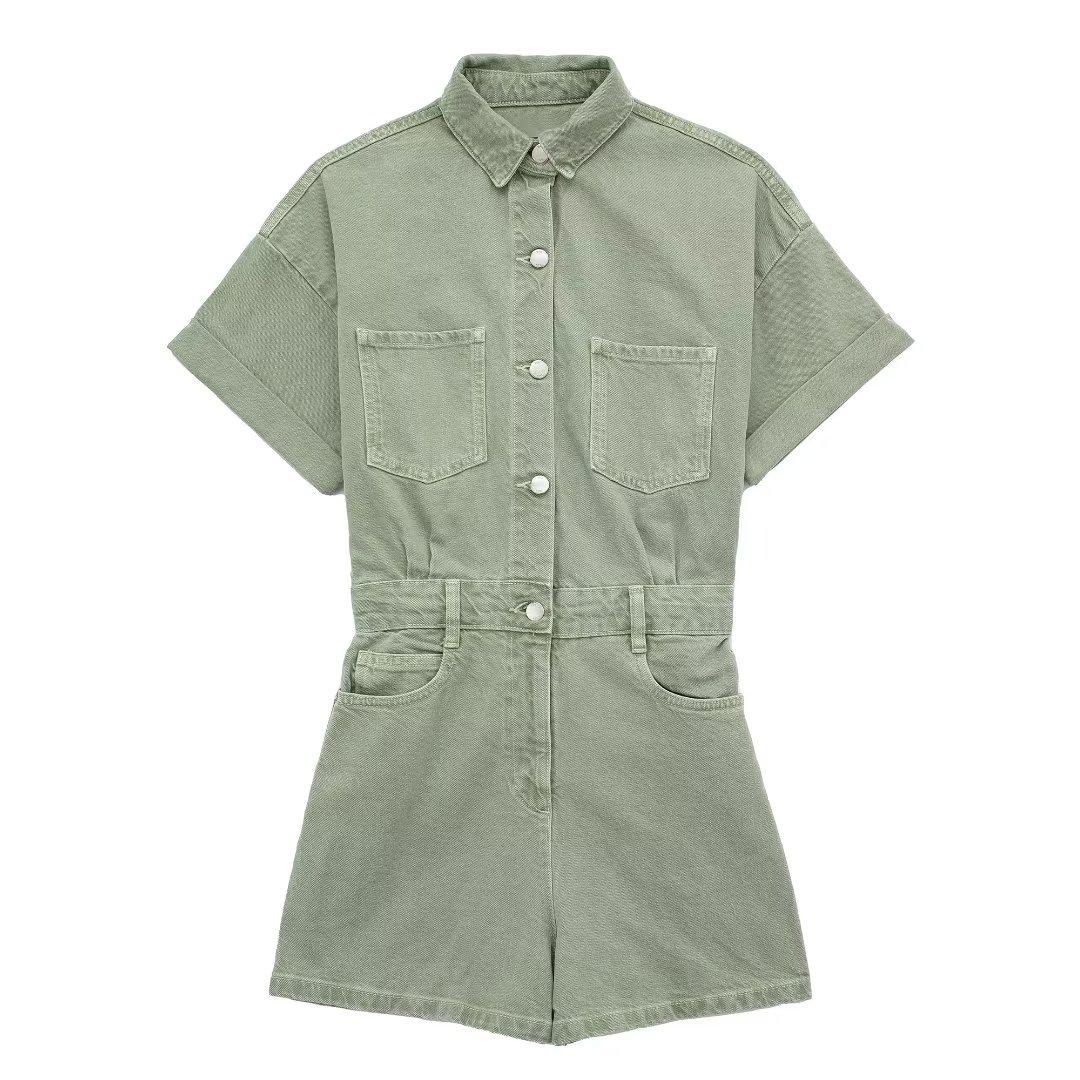 Ropa de Mujer Transfronteriza 2025 Nuevo Moda Europea y Americana Bolsillo de un Solo Botón Casual Mono Corto de Mezclilla Verano Venta al por Mayor