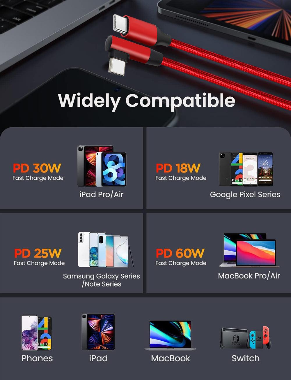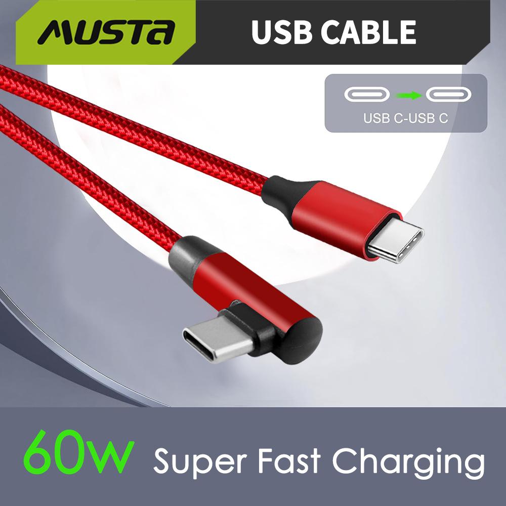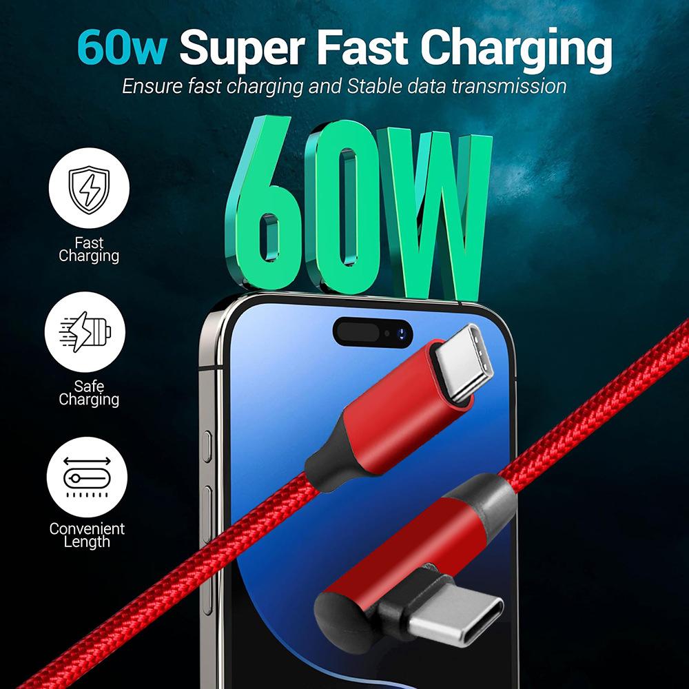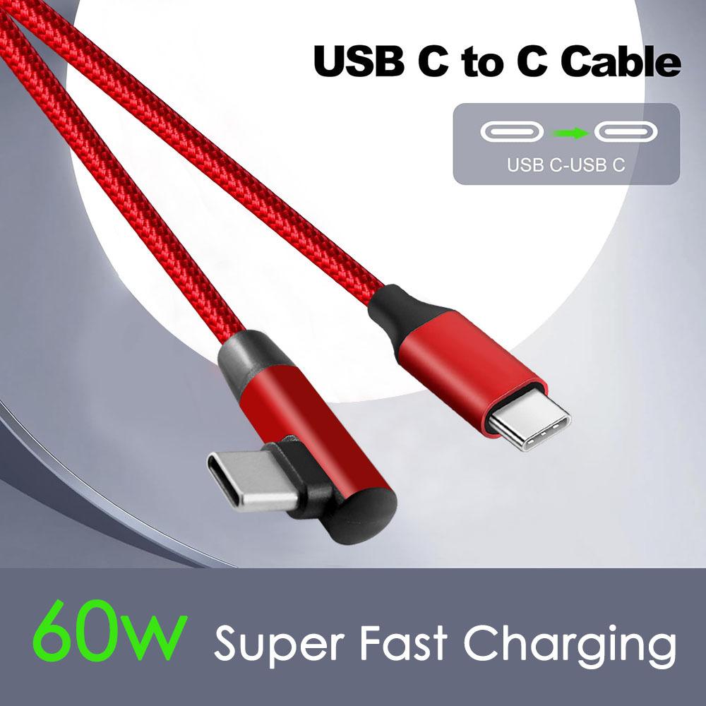 Compra Ventas directas de fábrica Carcasa de aluminio rojo de 90 grados con cable de datos tipo C trenzado Carga rápida USB C a C cable de datos para teléfono móvil al por mayor en Joom.pro