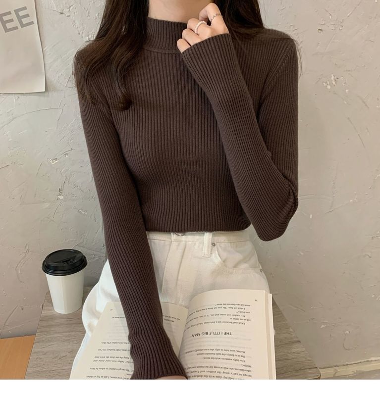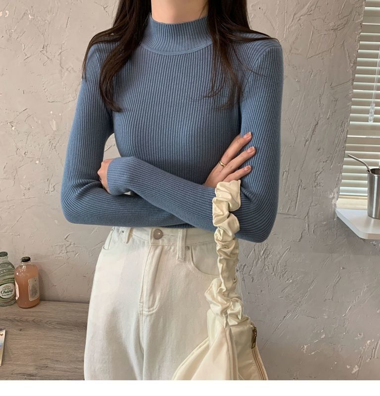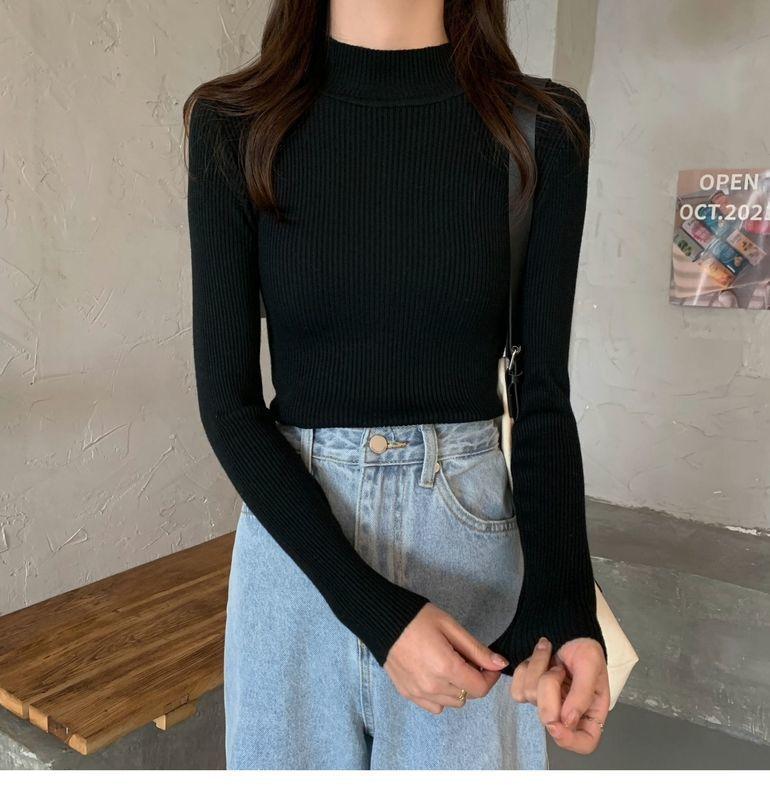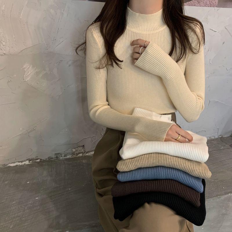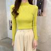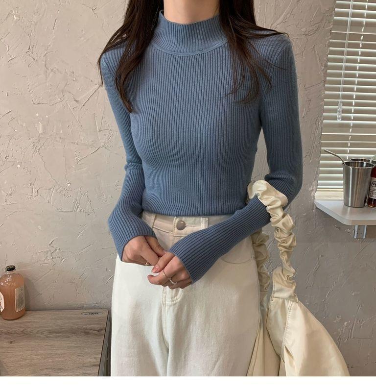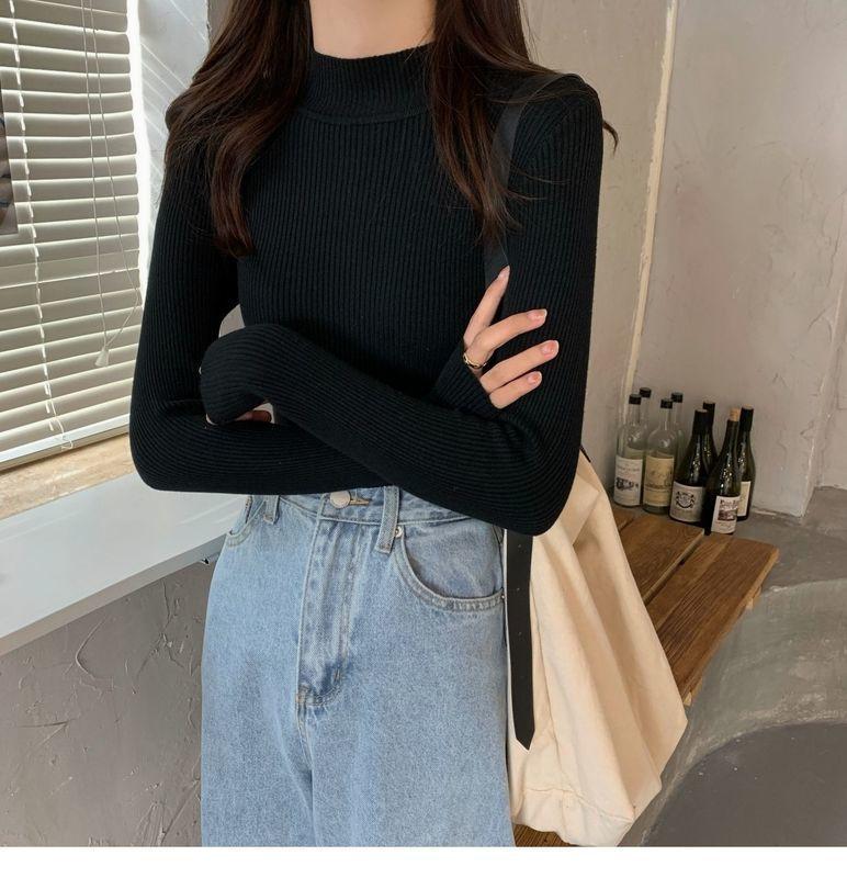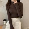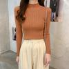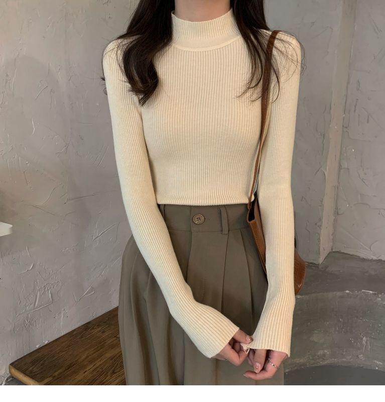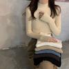 Popular camiseta básica de cuello alto para mujer otoño e invierno nueva versátil ajustada suéter de manga larga estilo occidental popular ropa interior para mujer