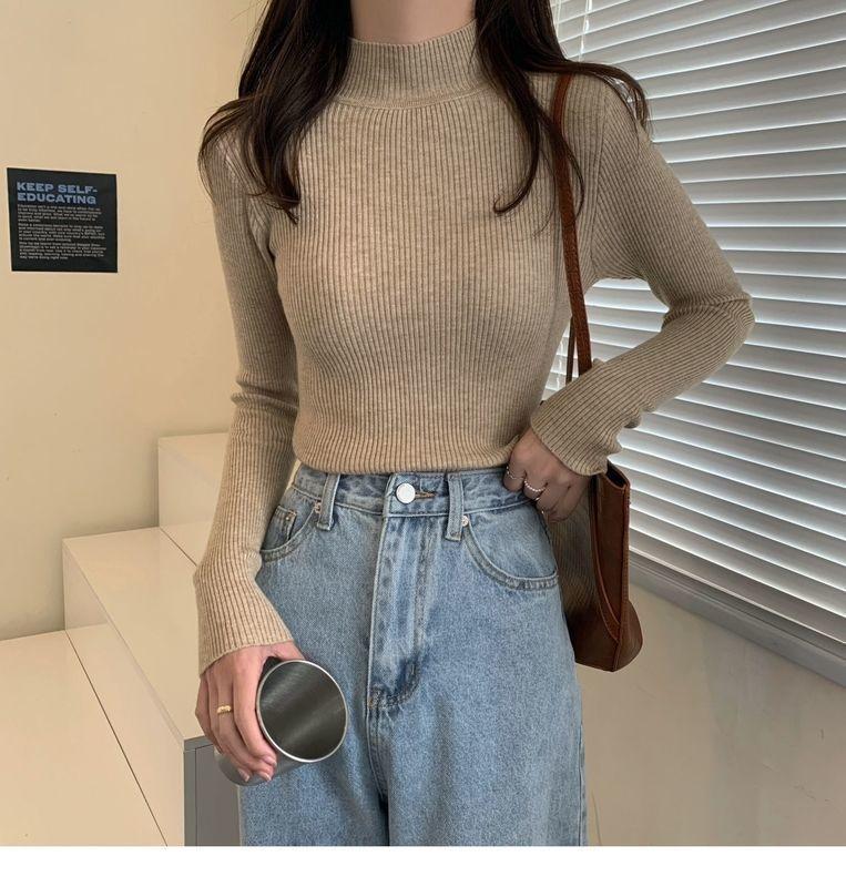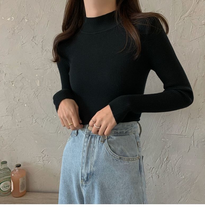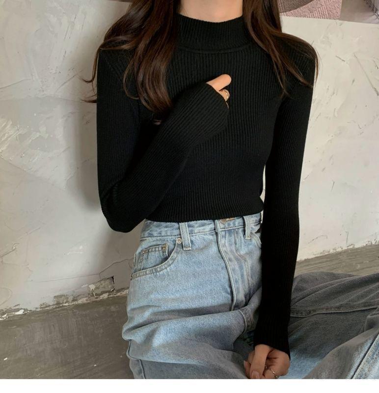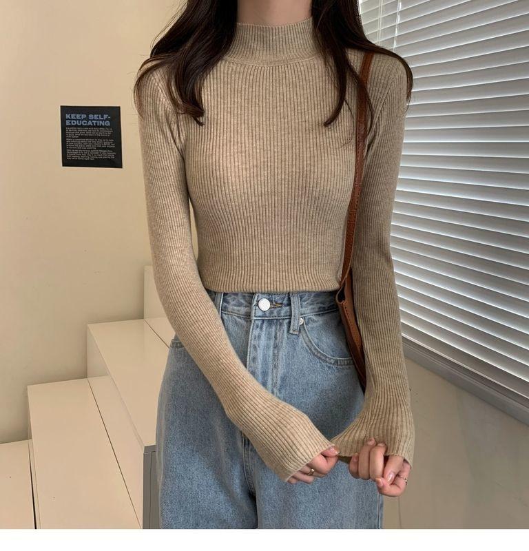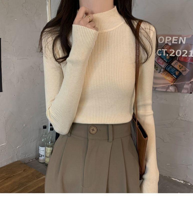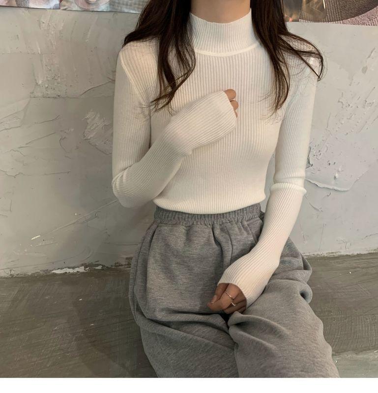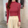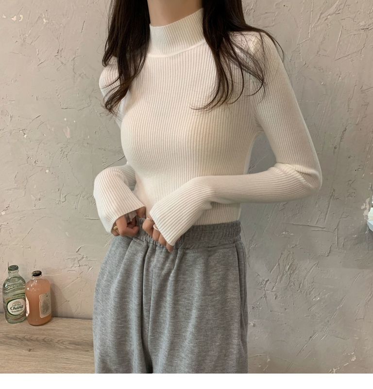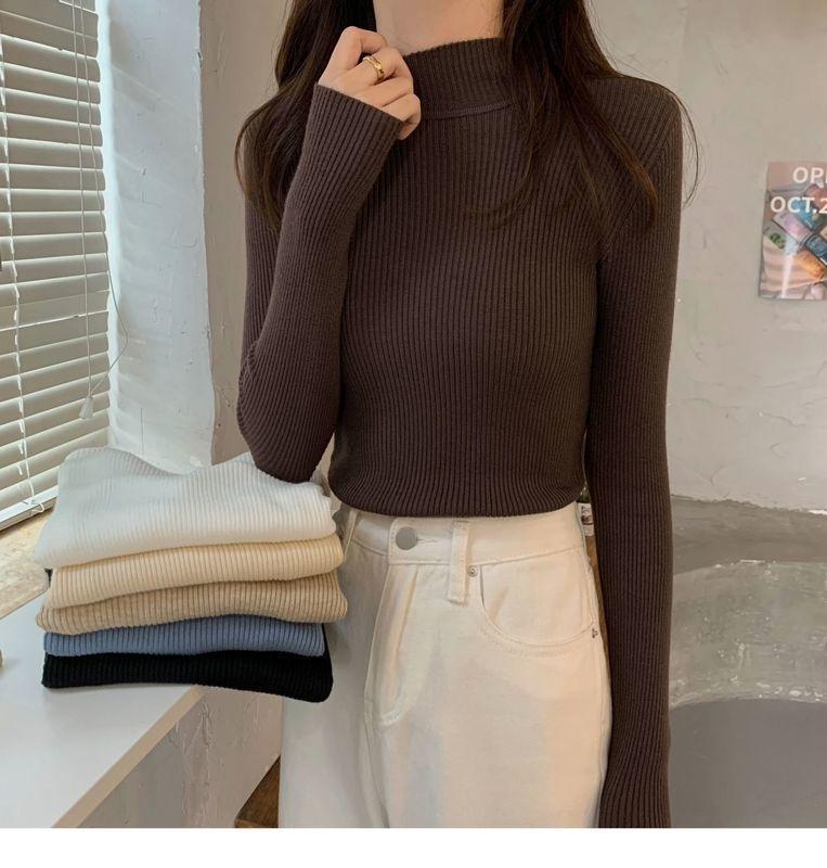 Popular camiseta básica de cuello alto para mujer otoño e invierno nueva versátil ajustada suéter de manga larga estilo occidental popular ropa interior para mujer
