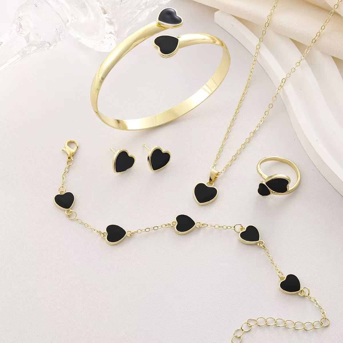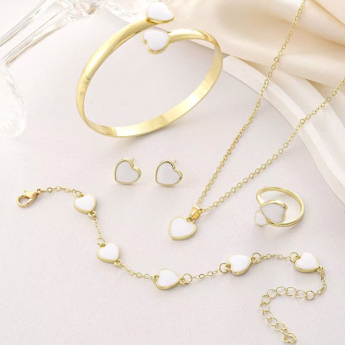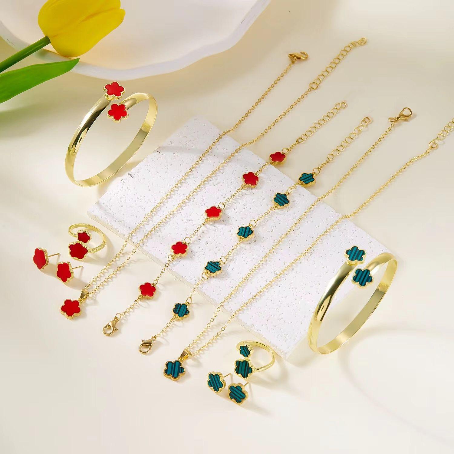 Ventas Calientes Transfronterizas Flor de Cinco Pétalos Amor Goteando Aceite Collar de Mujer Pulsera Anillo Aretes Pulsera Juego de Cinco Piezas Accesorios