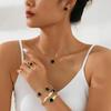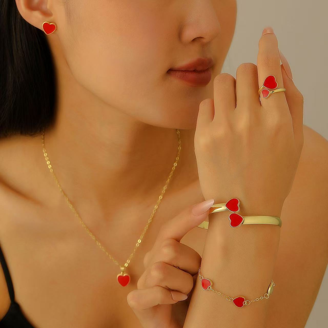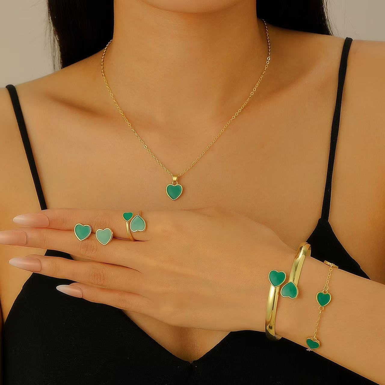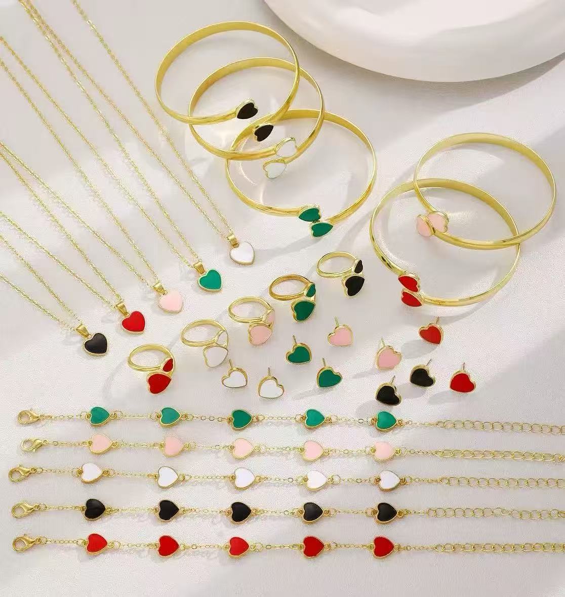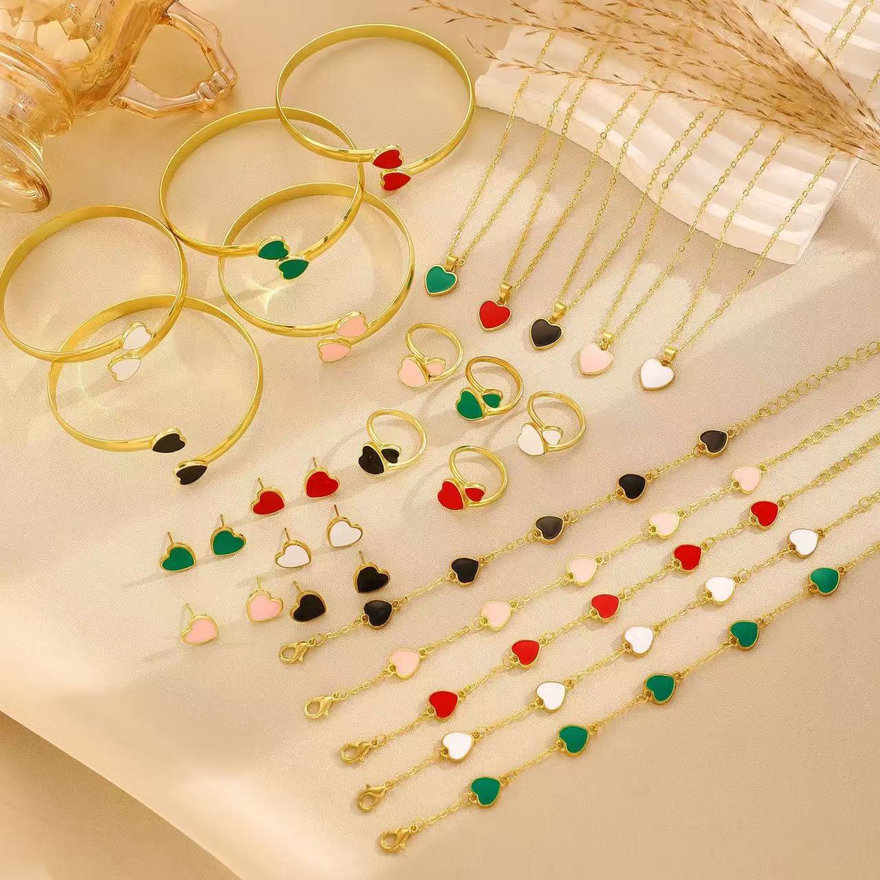 Ventas Calientes Transfronterizas Flor de Cinco Pétalos Amor Goteando Aceite Collar de Mujer Pulsera Anillo Aretes Pulsera Juego de Cinco Piezas Accesorios