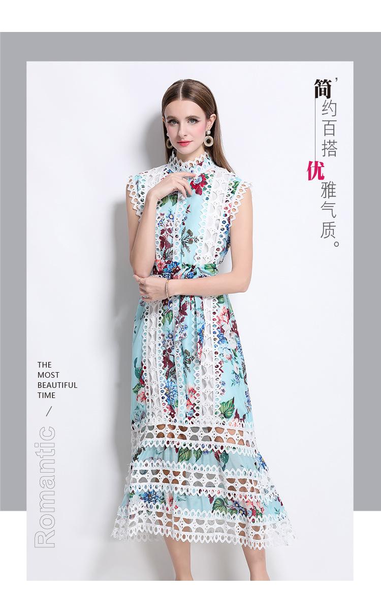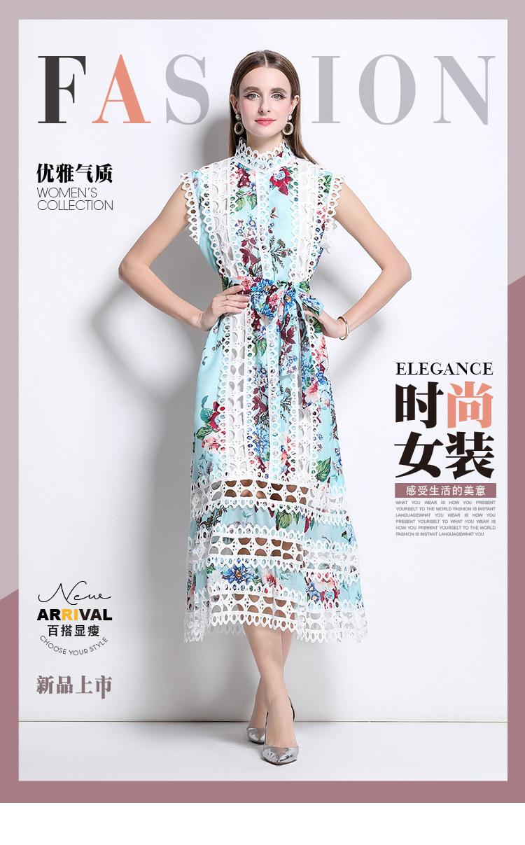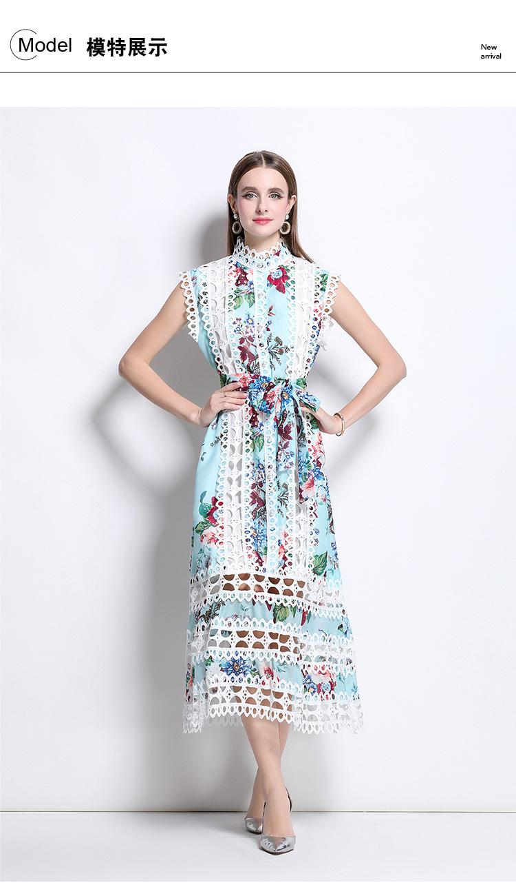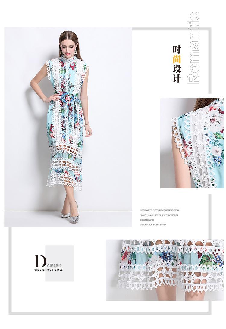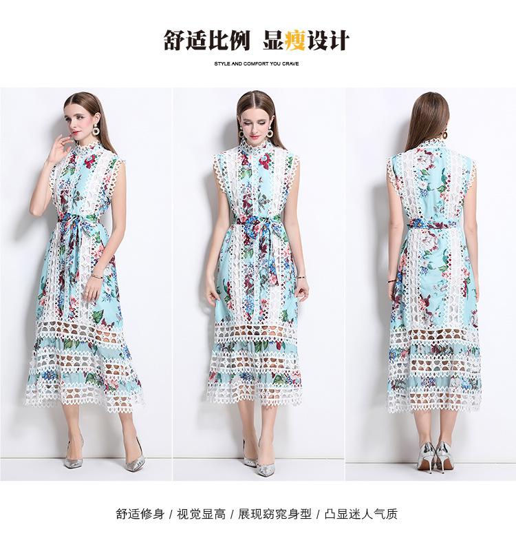 Compra Foto Real en Stock-Falda A-Line de Encaje Calado Estilo Palacio Francés Verano Vestido Slim de Cuello Alto para Mujer al por mayor en Joom.pro