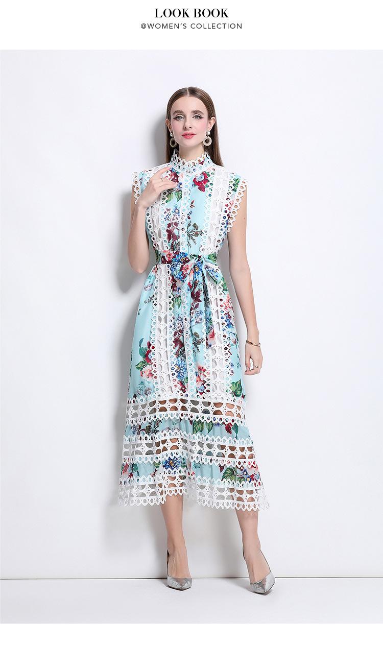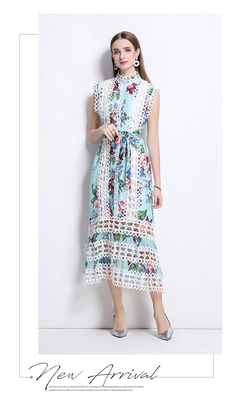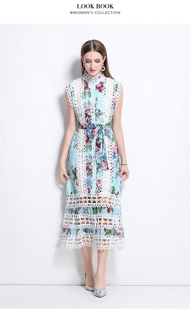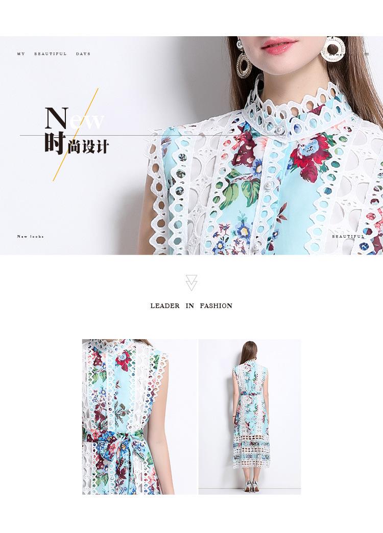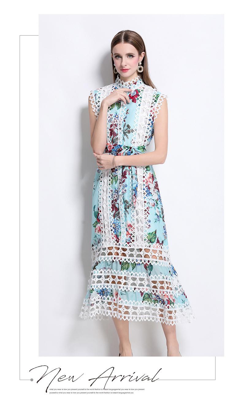 Compra Foto Real en Stock-Falda A-Line de Encaje Calado Estilo Palacio Francés Verano Vestido Slim de Cuello Alto para Mujer al por mayor en Joom.pro