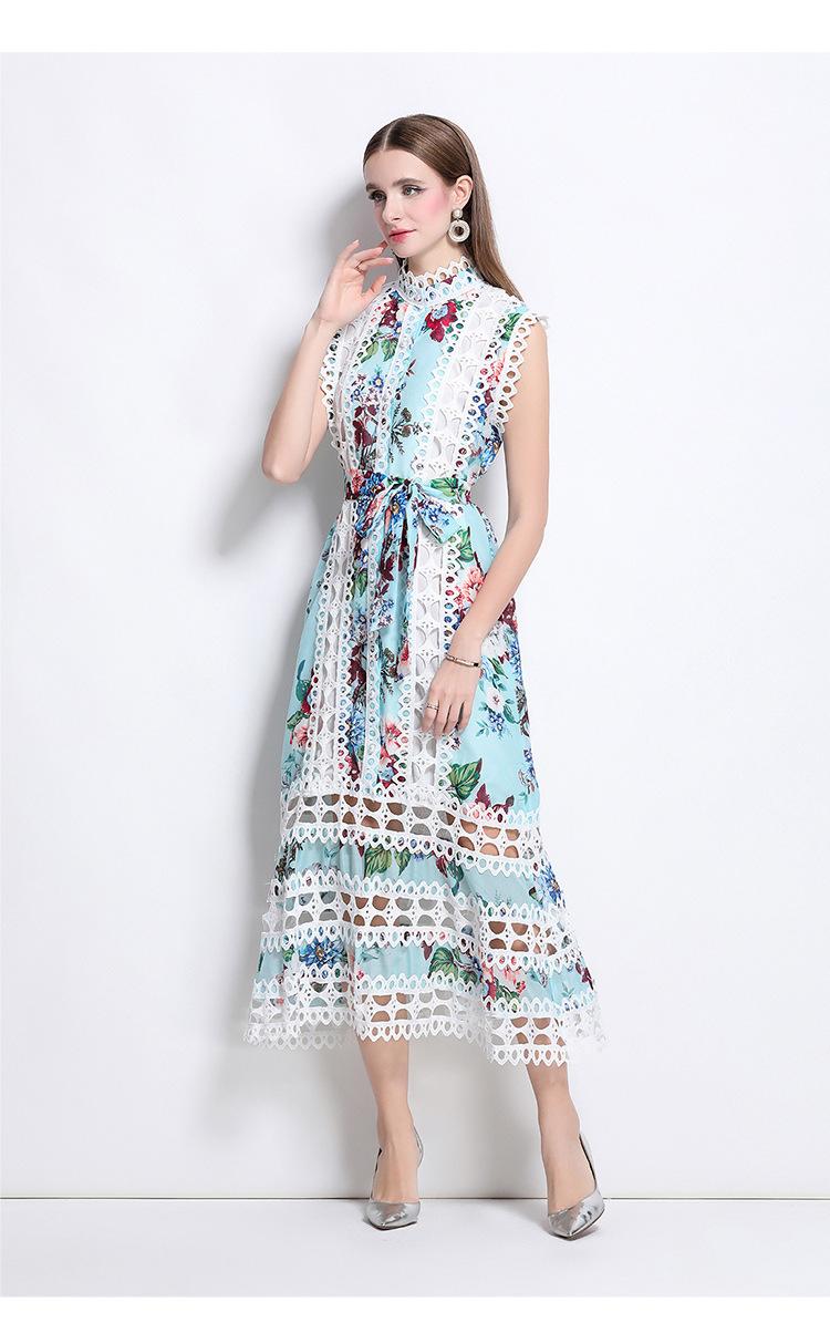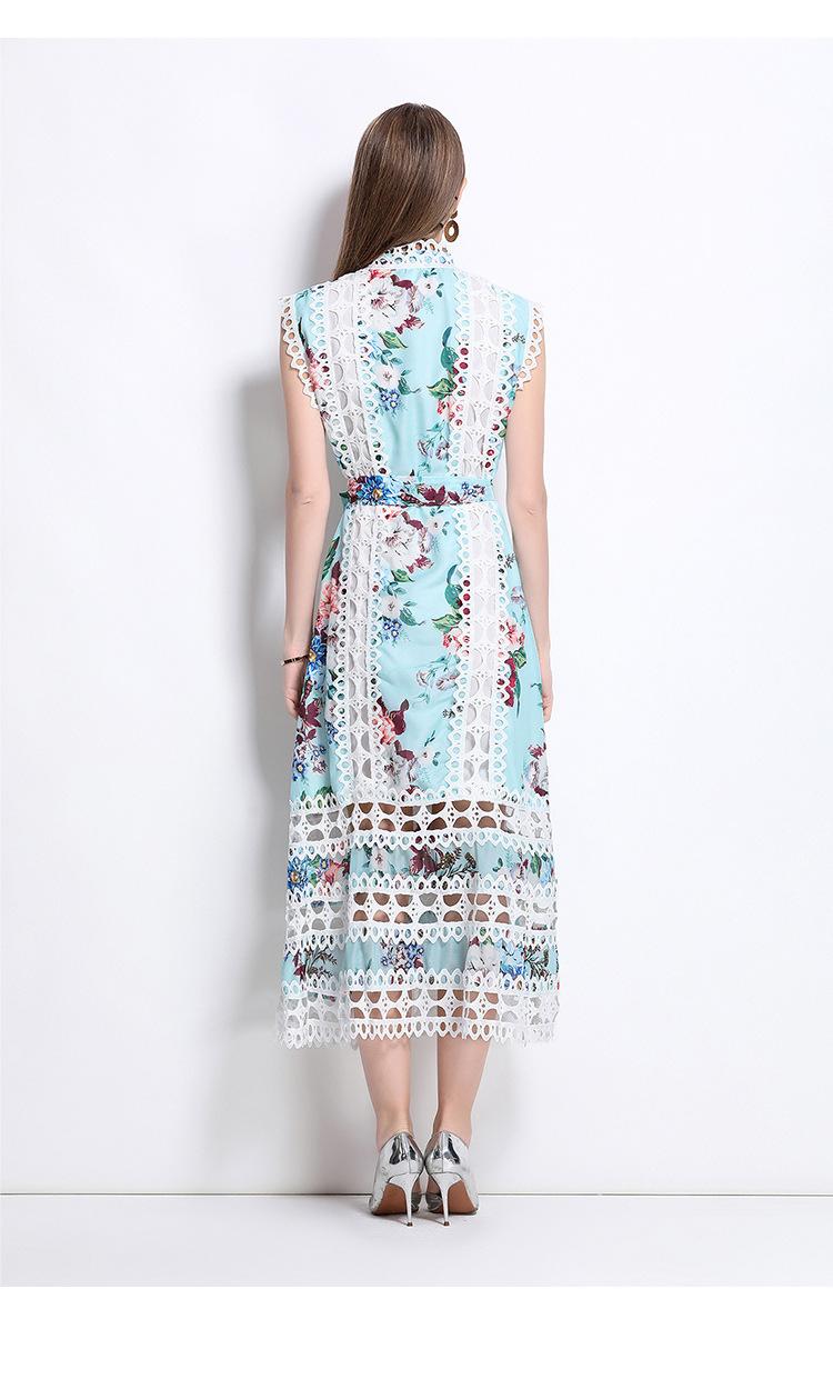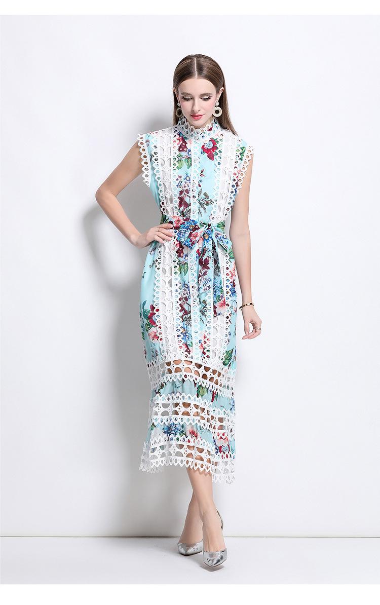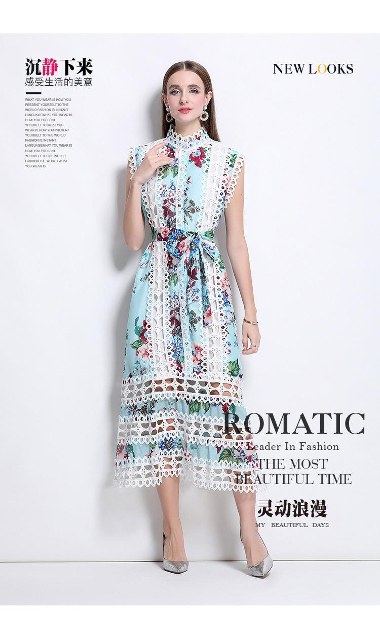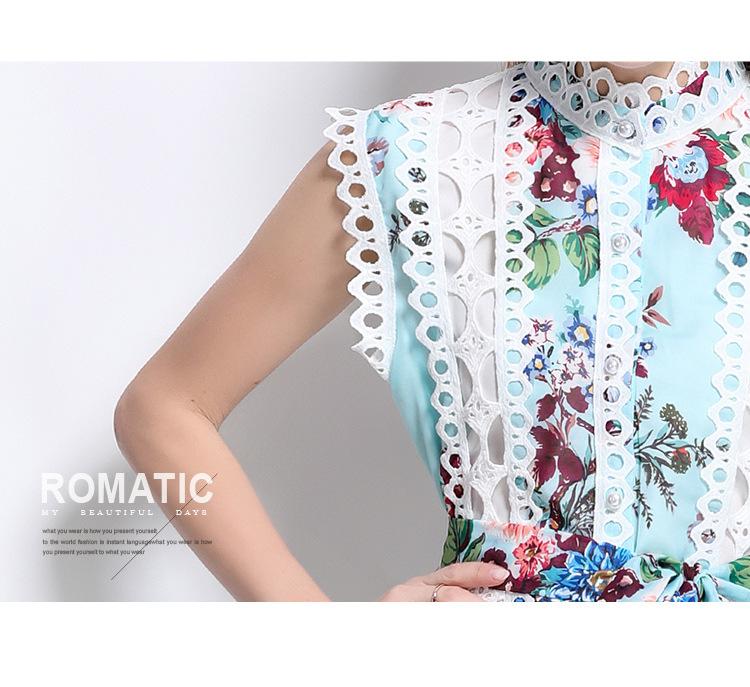 Compra Foto Real en Stock-Falda A-Line de Encaje Calado Estilo Palacio Francés Verano Vestido Slim de Cuello Alto para Mujer al por mayor en Joom.pro