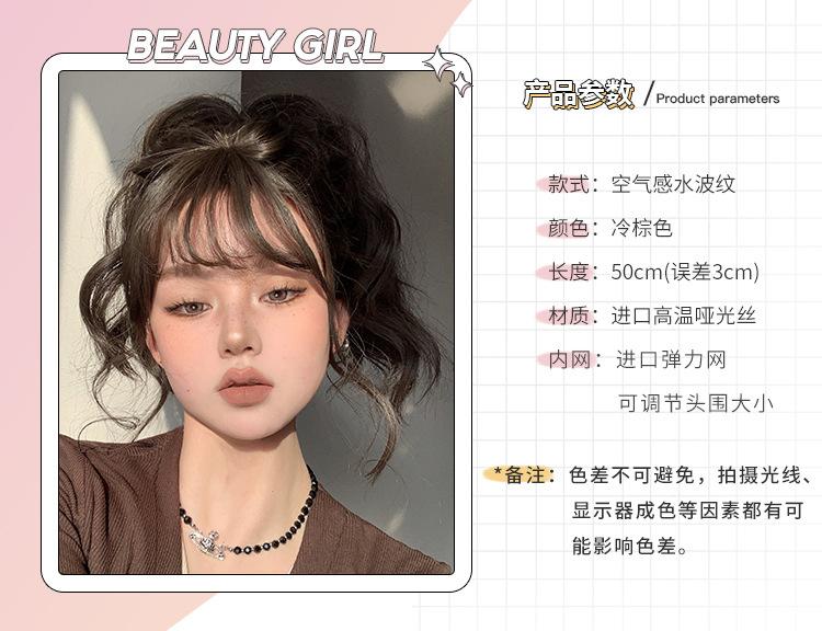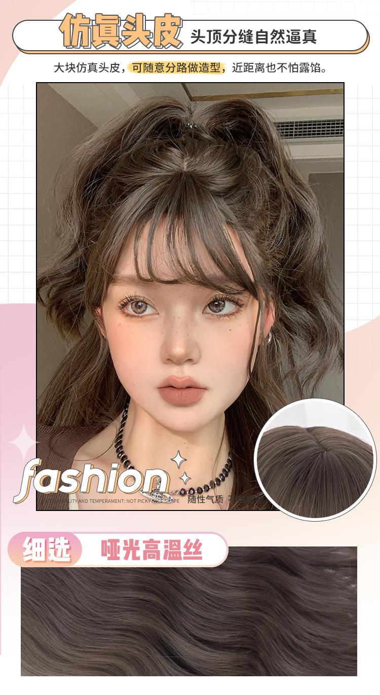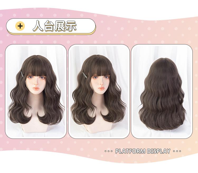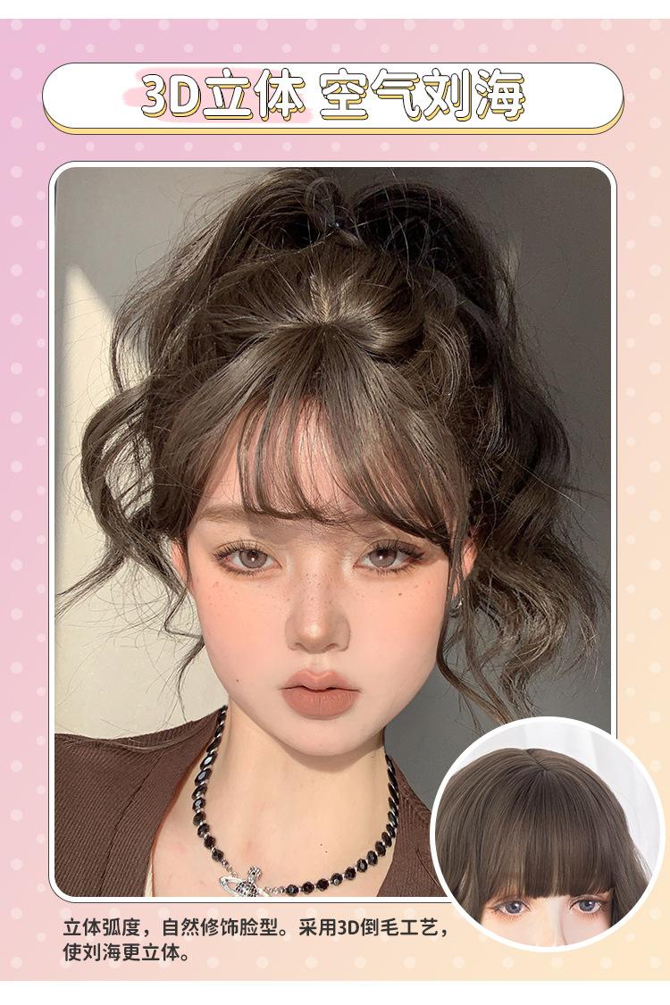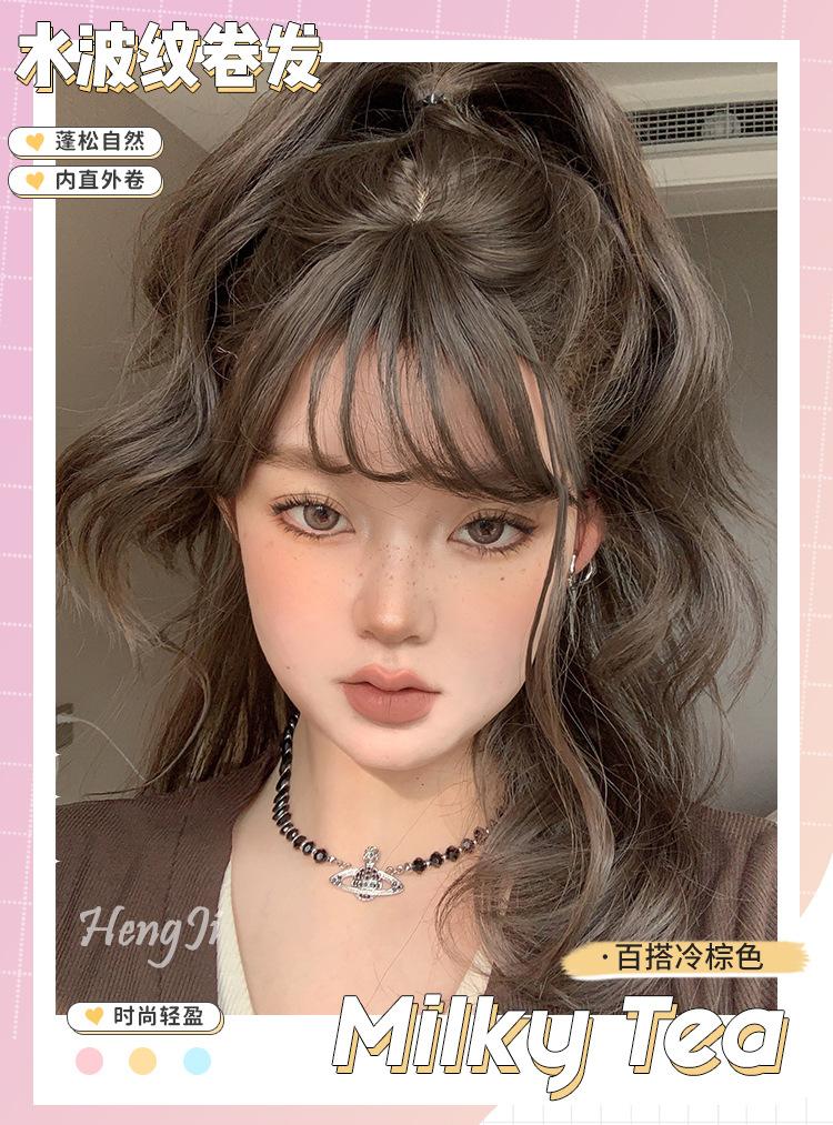 Peluca Transfronteriza para Mujer Cabello Largo Estilo Coreano Peinado Onda Grande Cabello Largo Rizado Flequillo de Aire lolita Peluca de Cobertura Completa