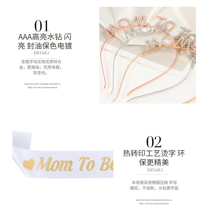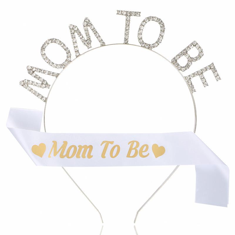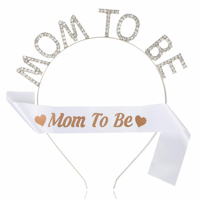 Set de tocado y cinta para futura madre diadema MOM TO BE diadema de cristal cinturón etiqueta