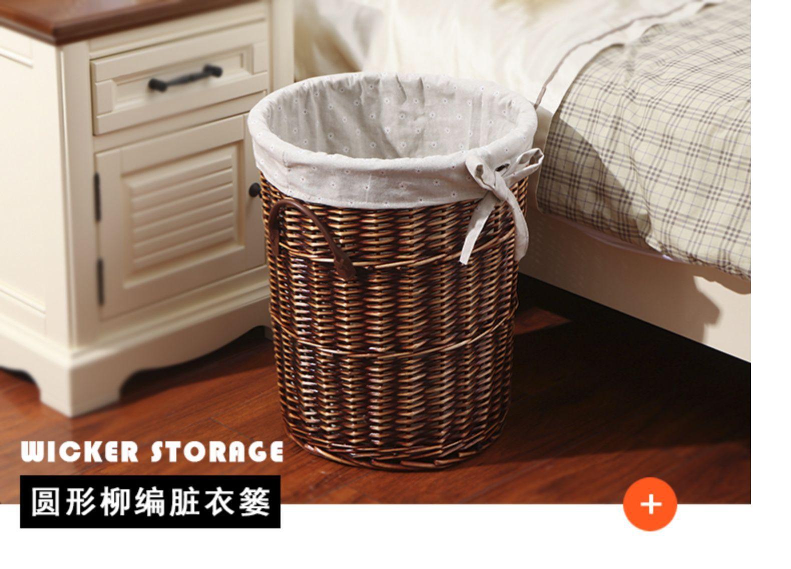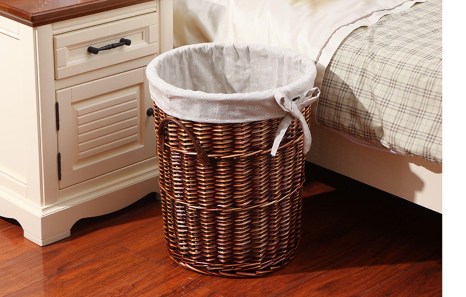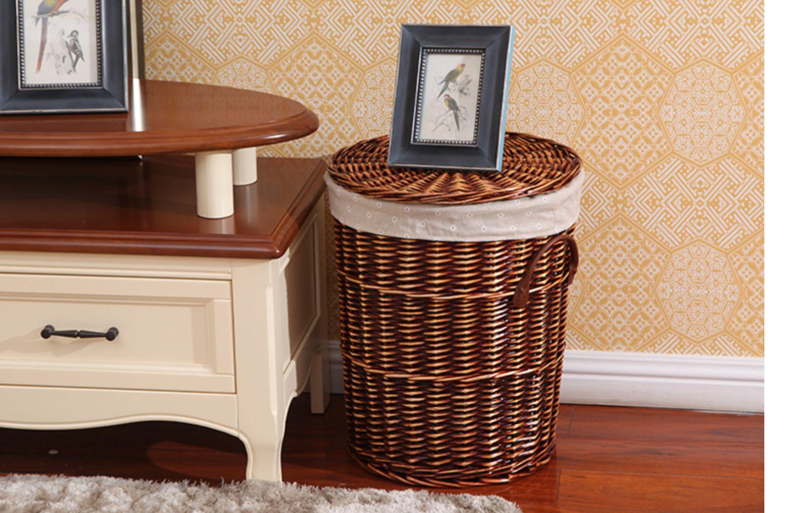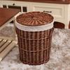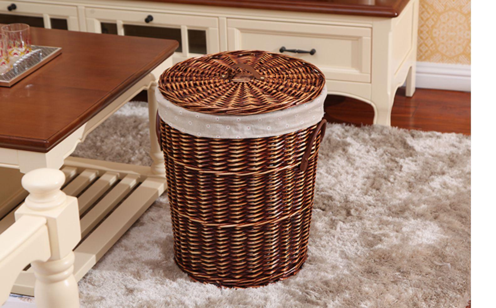Compra Liquidación especial cesto de lavandería práctico estilo nórdico mimbre tejido forro de tela asa de cuero cesto de lavandería con tapa al por mayor en Joom.pro