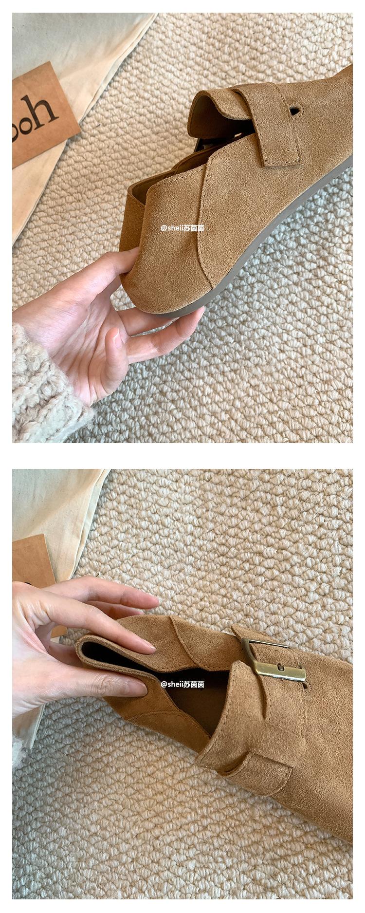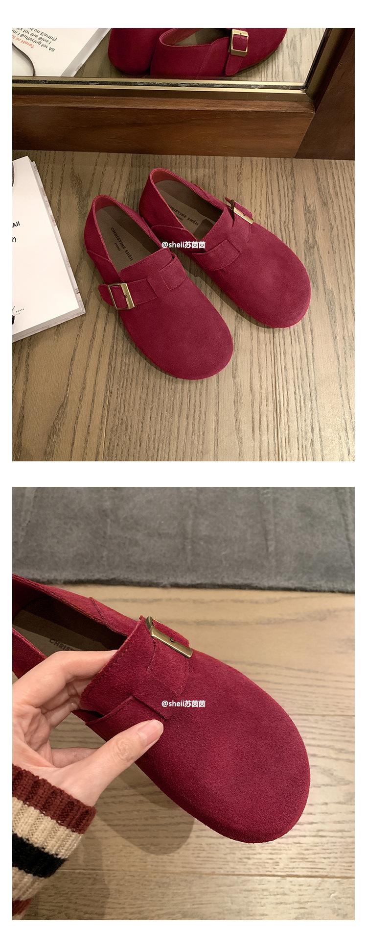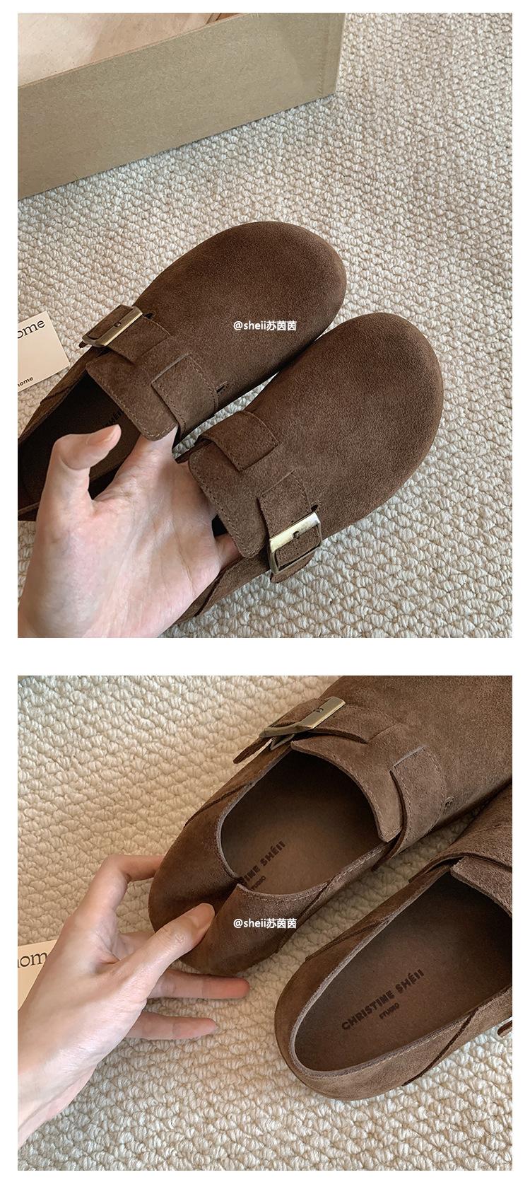 Versión piel de vaca Grape Mom mismo estilo versión sin espalda retro cuero genuino correa con hebilla elevación interior casual Birkenstock zapatos individuales casuales para mujer