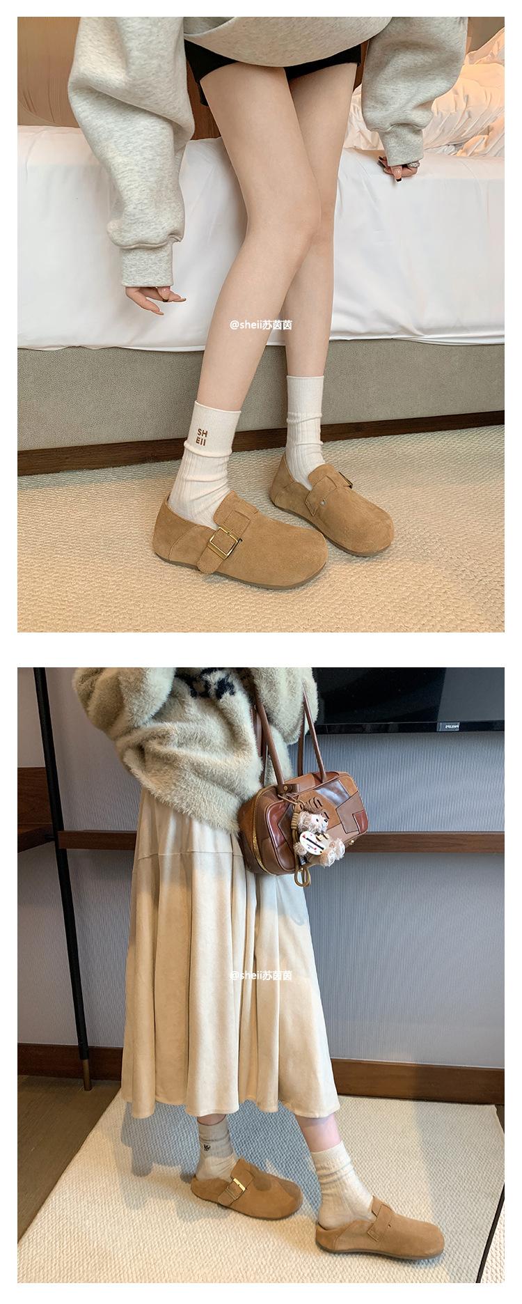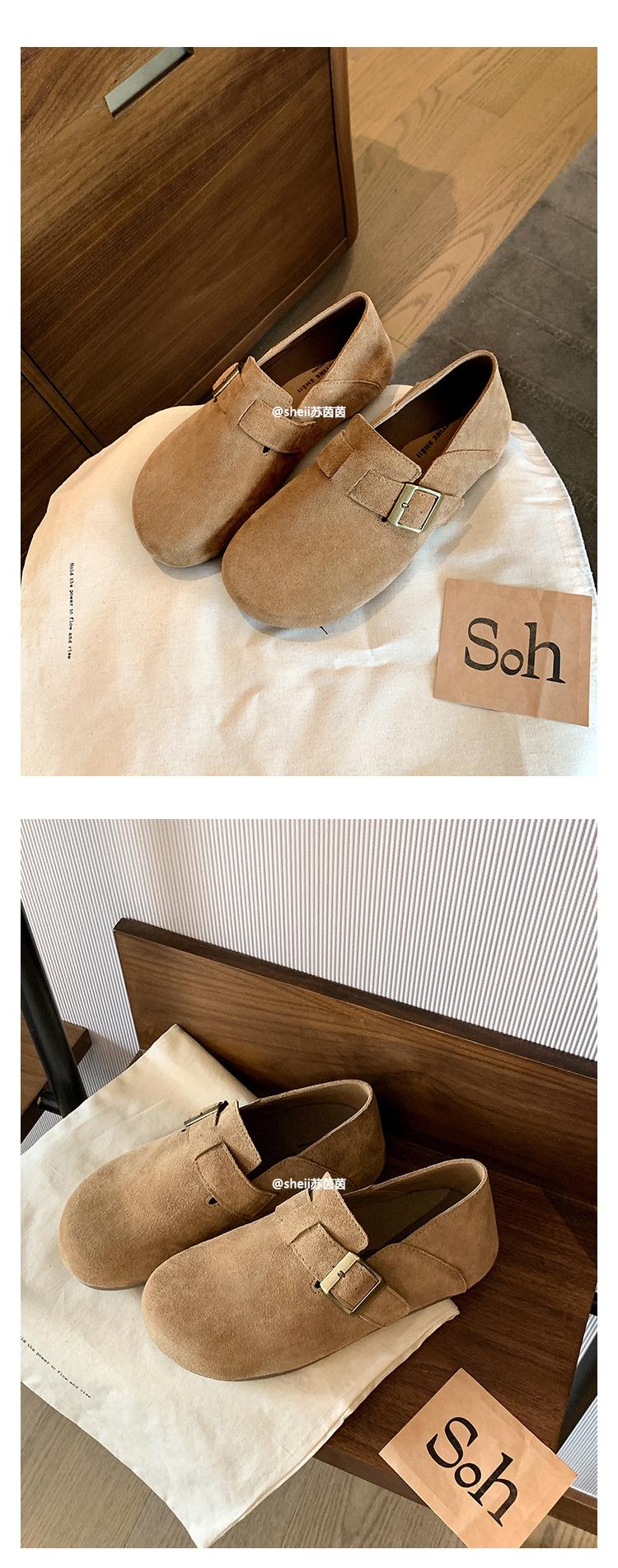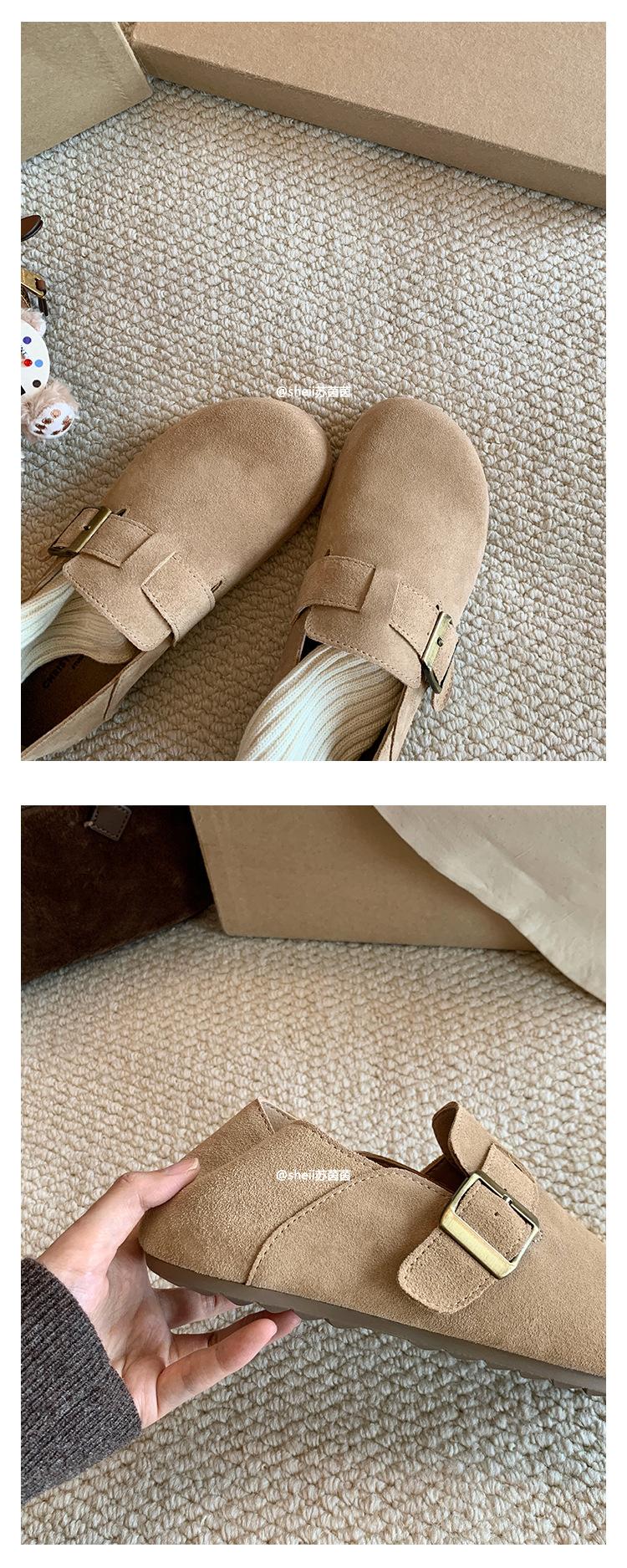 Versión piel de vaca Grape Mom mismo estilo versión sin espalda retro cuero genuino correa con hebilla elevación interior casual Birkenstock zapatos individuales casuales para mujer