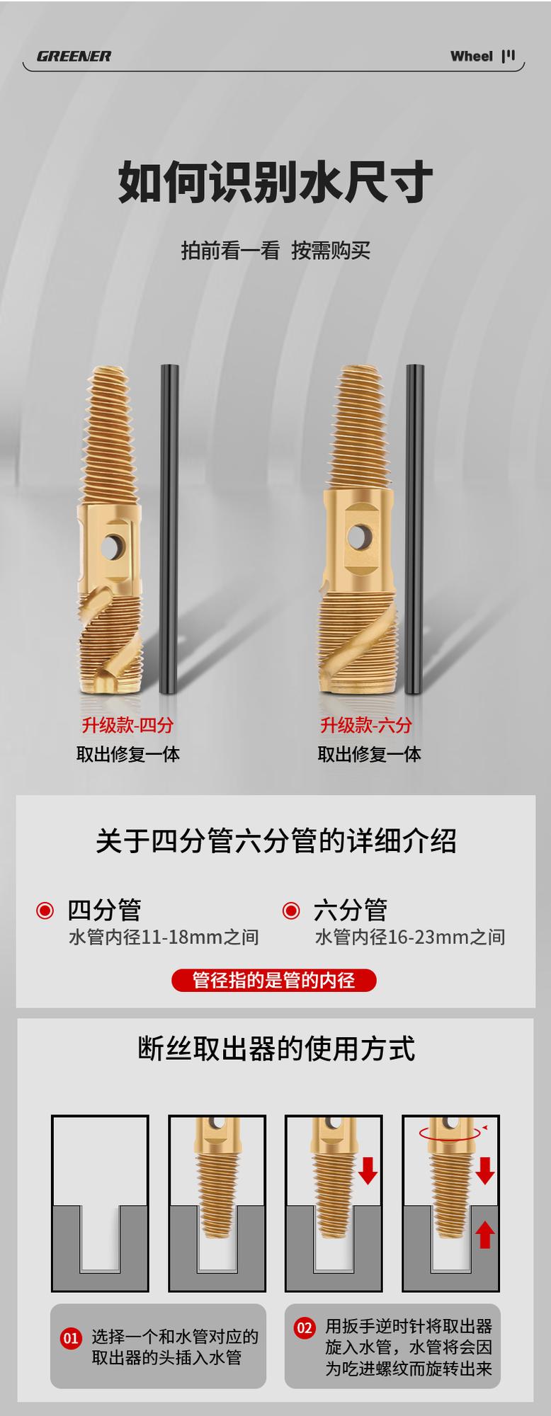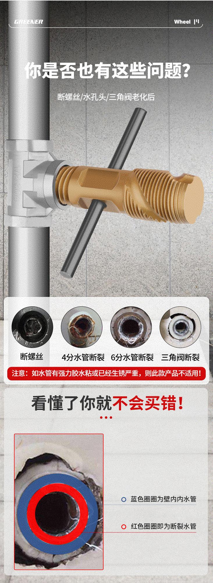 Extractor de Bosque Verde tubería rota grifo tubería de agua rosca rota cabezal de corte alambre deslizado artefacto de reparación macho inverso B