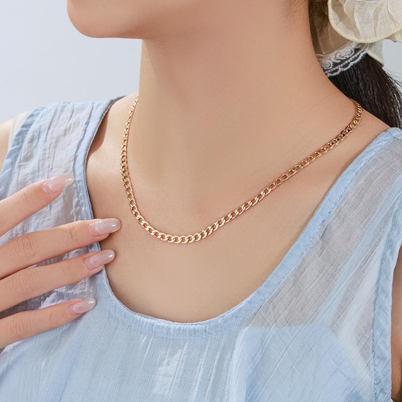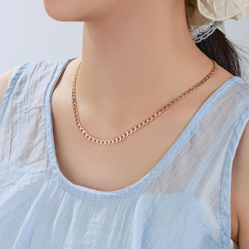 Xuping Fashion Clásico Europeo y Americano Transfronterizo Hebilla de Día Cadena Lisa Cadena a Juego Aleación de Cobre Electrochapado Oro de 18k Collar Simple
