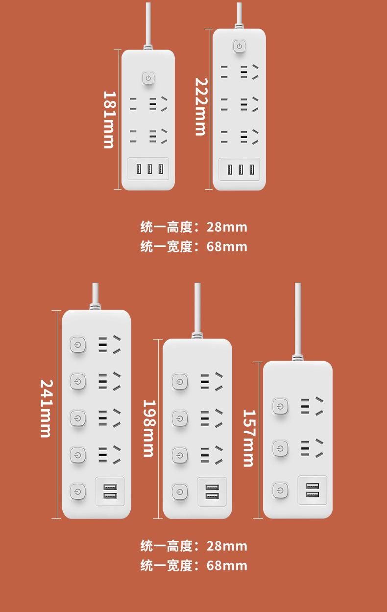 Panel de Enchufes Multifuncional para el Hogar USB Fila de Múltiples Orificios Tablero de Enchufes para Dormitorio de Estudiantes con Cable