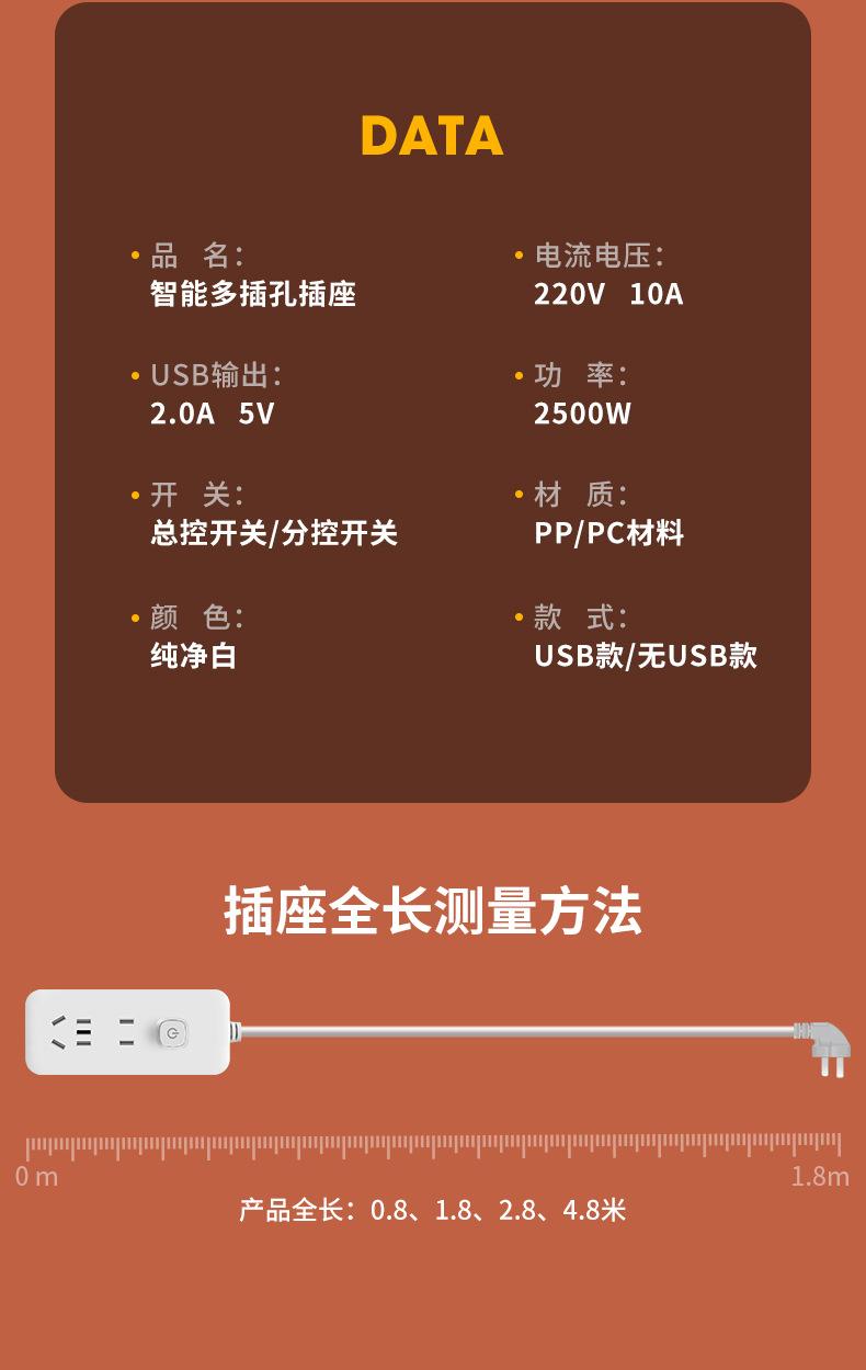 ✧✧3 switches [2 sockets + 2 usb 0.8m ]