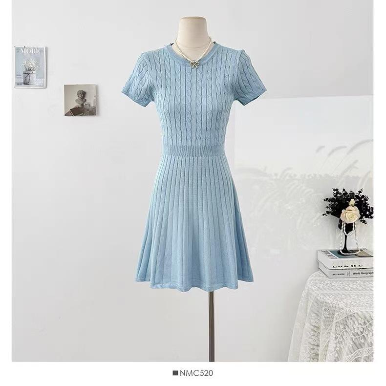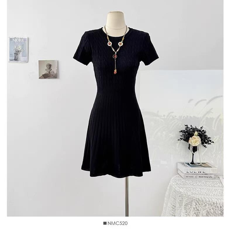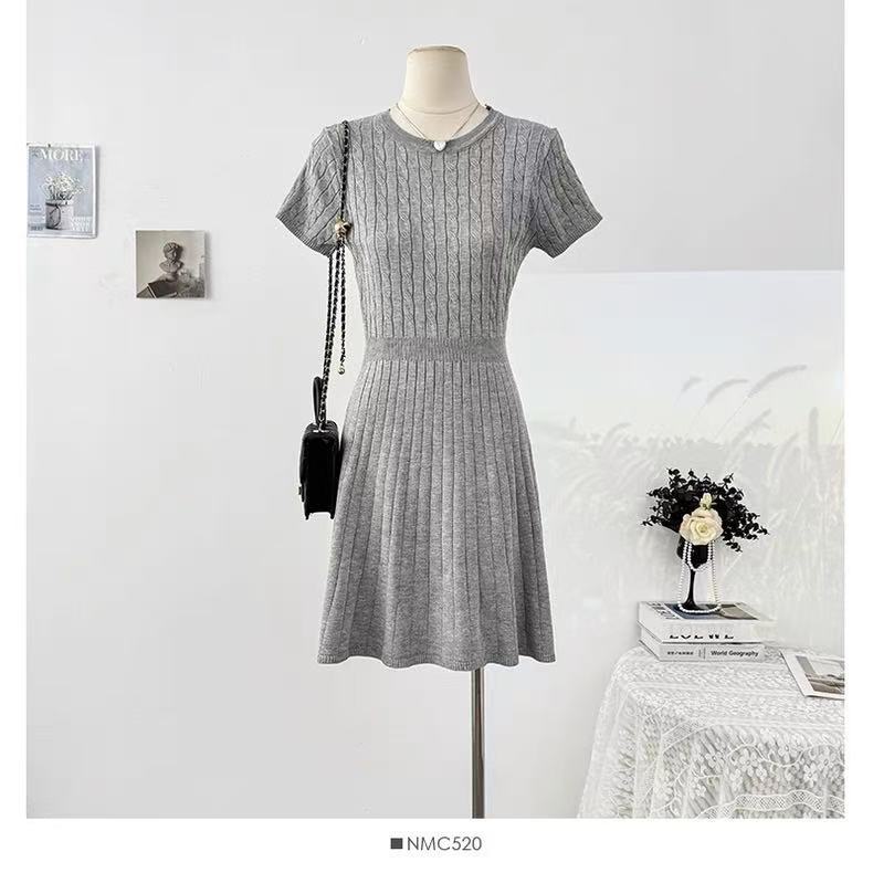 Vestido de Punto de Manga Corta y Cuello Redondo Retro Francés para Mujer Otoño 2026 Estilo Deseo Puro Cintura Alta Adelgazante Falda Línea A