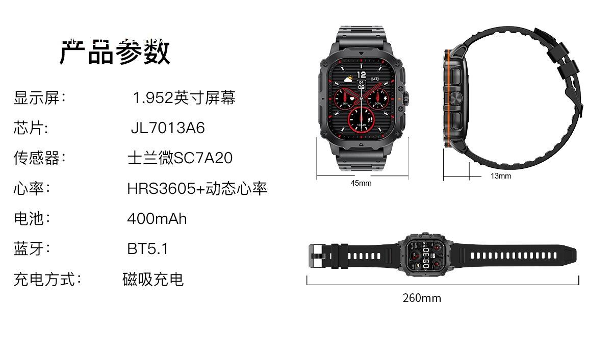Reloj Inteligente AK72 Transfronterizo Pantalla AMOLED 1.952 Llamada Bluetooth Frecuencia Cardíaca Monitoreo de Oxígeno en Sangre Multideporte al Aire Libre