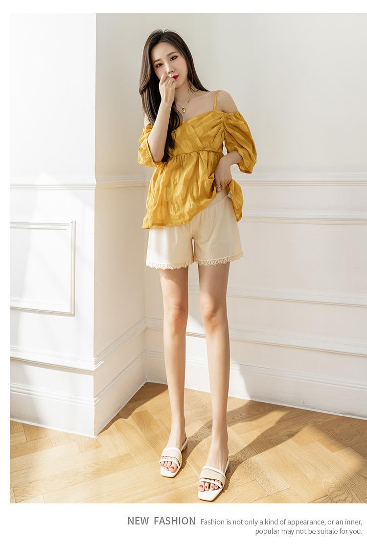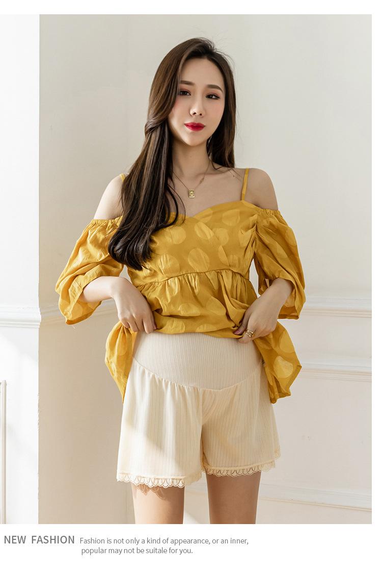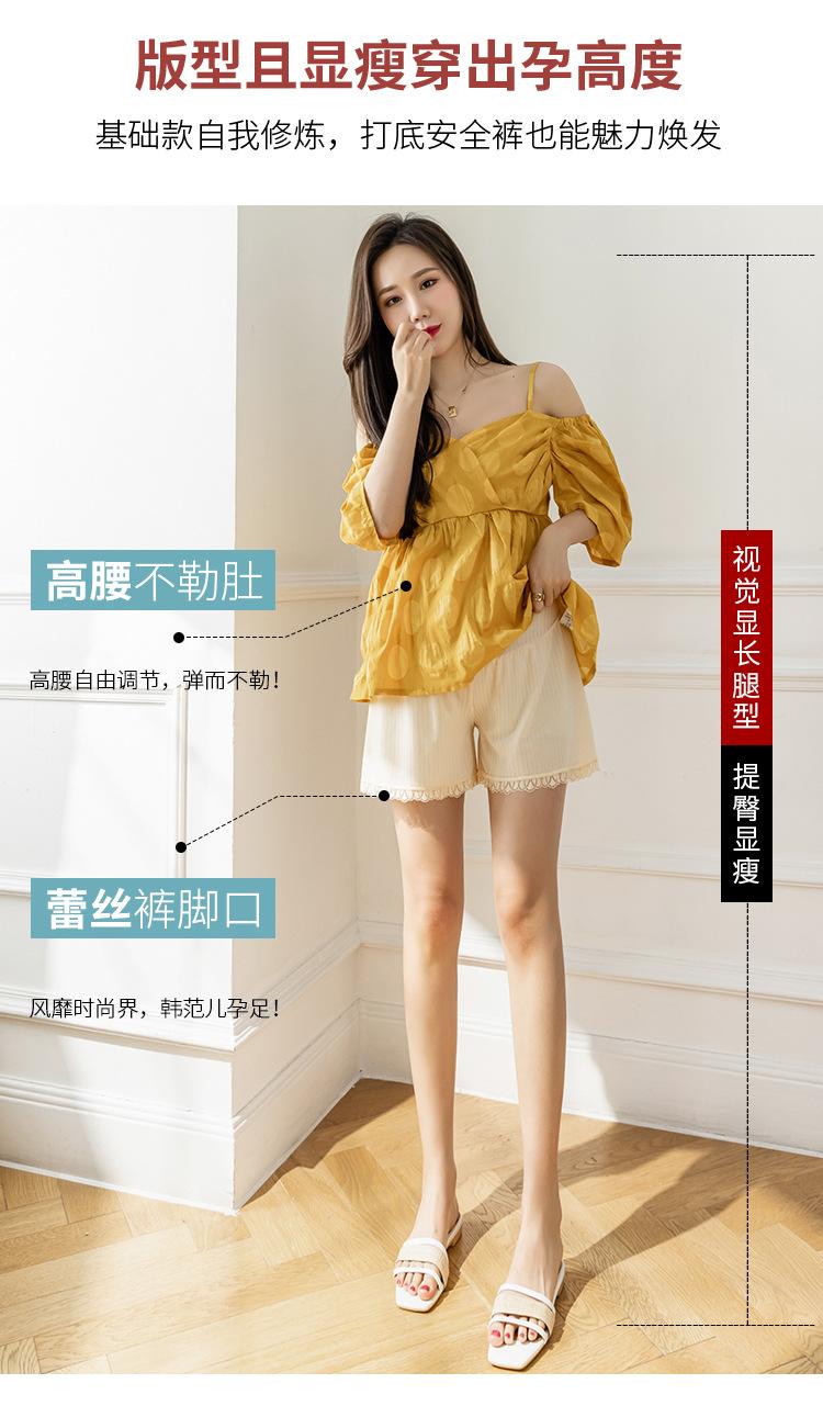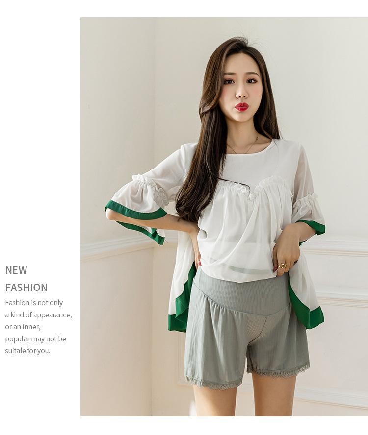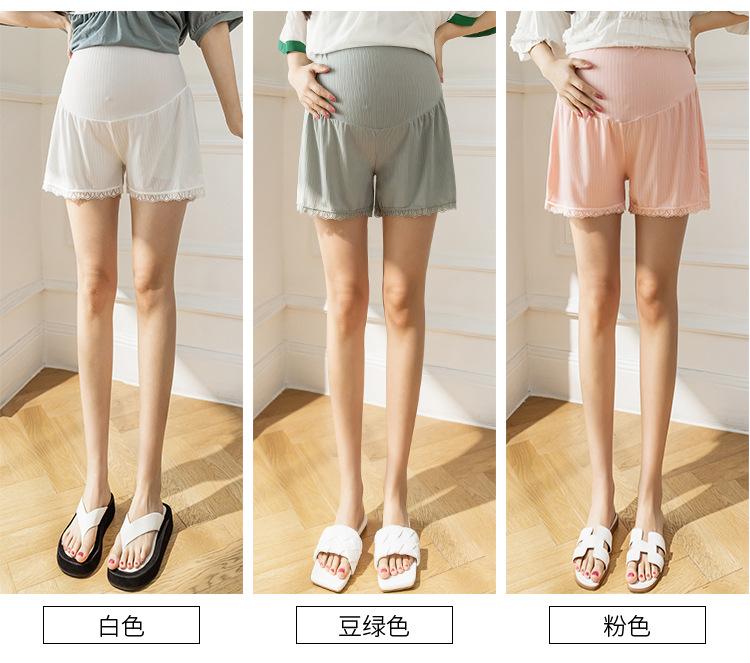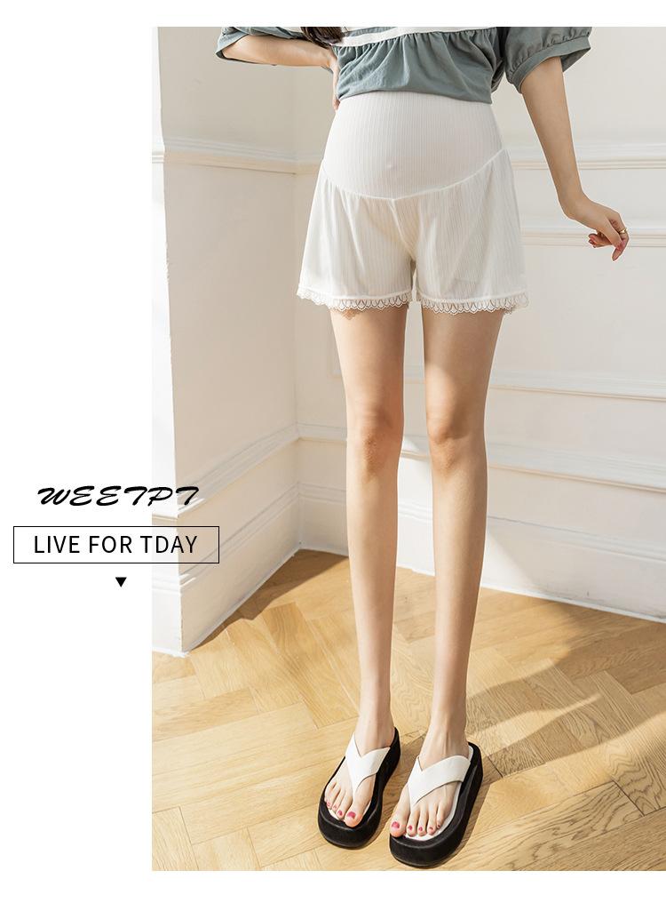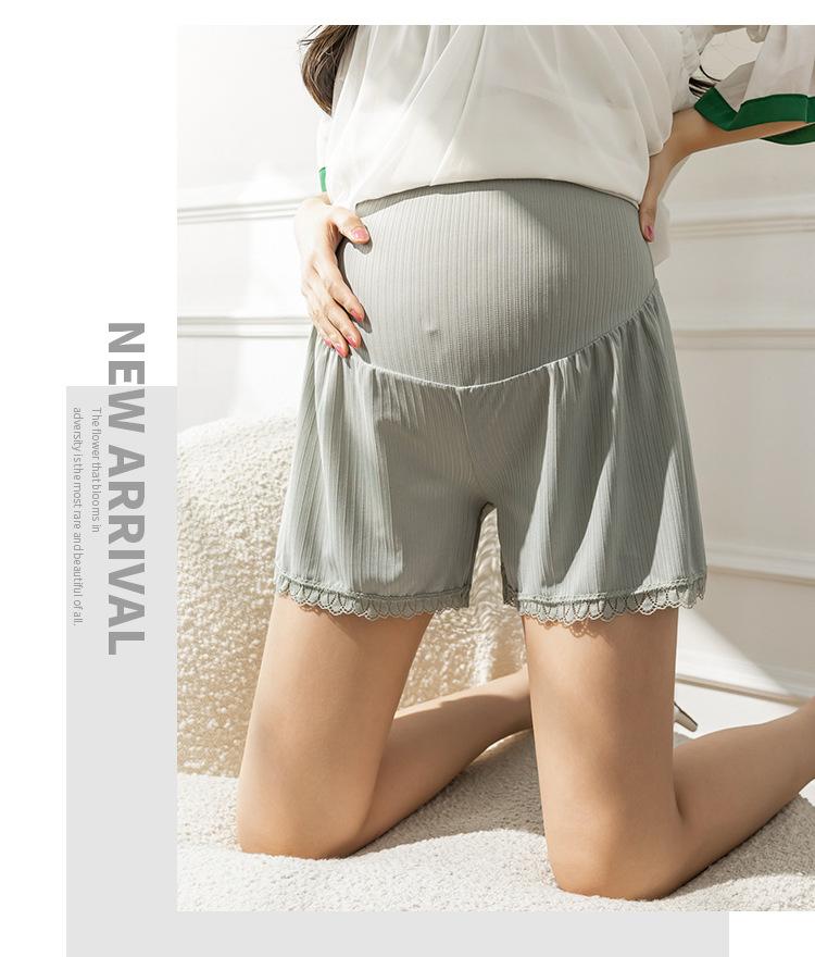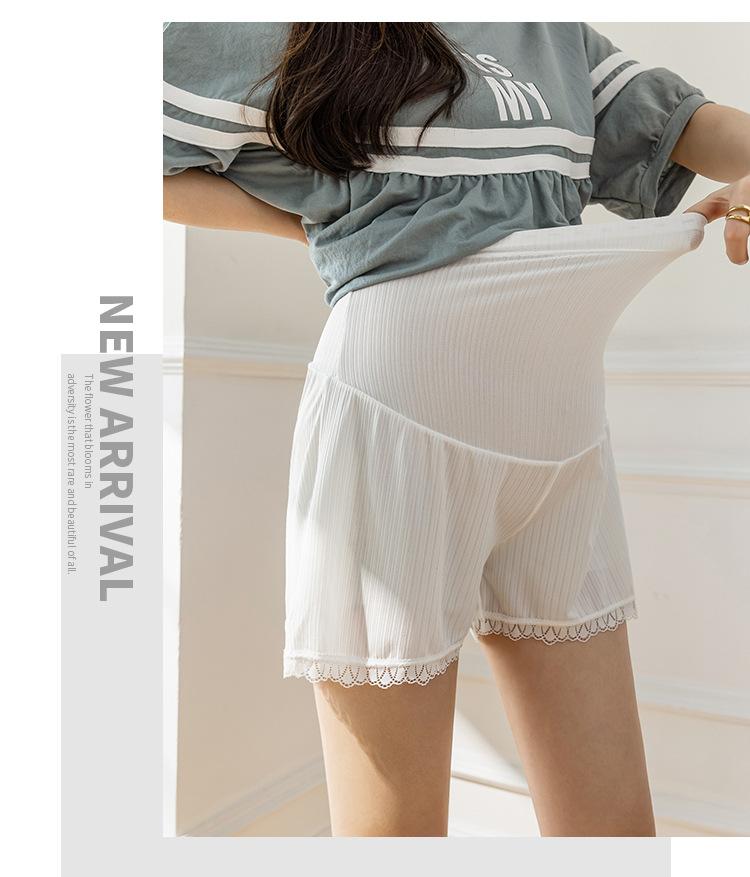 Pantalones de Maternidad, Estilo Delgado de Verano, Shorts de Seguridad de Tres Cuartos, Cintura Alta con Soporte para el Vientre Encaje Anti-Exposición Shorts de Moda para el Embarazo