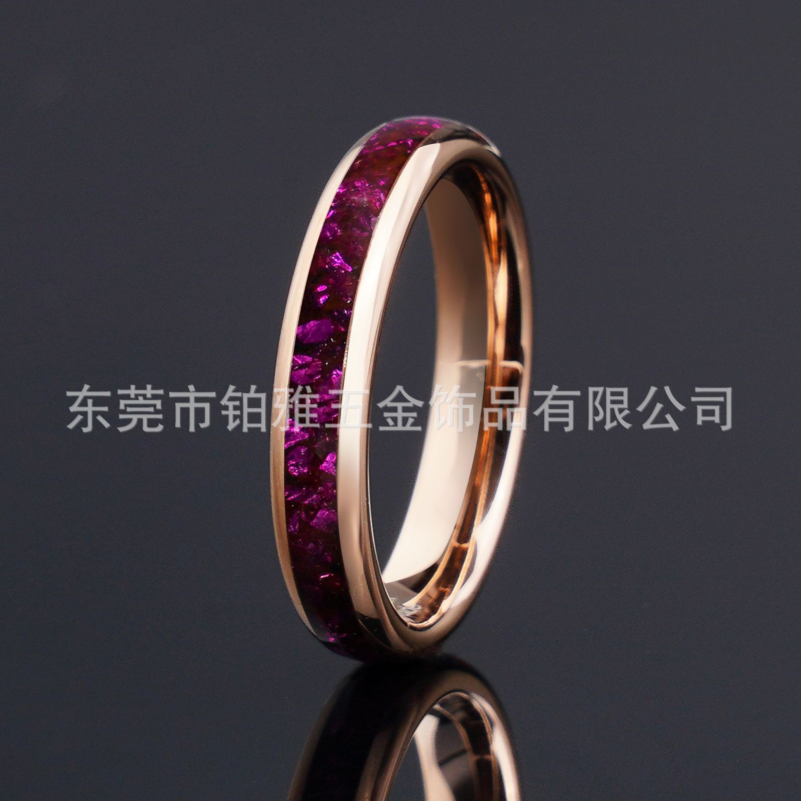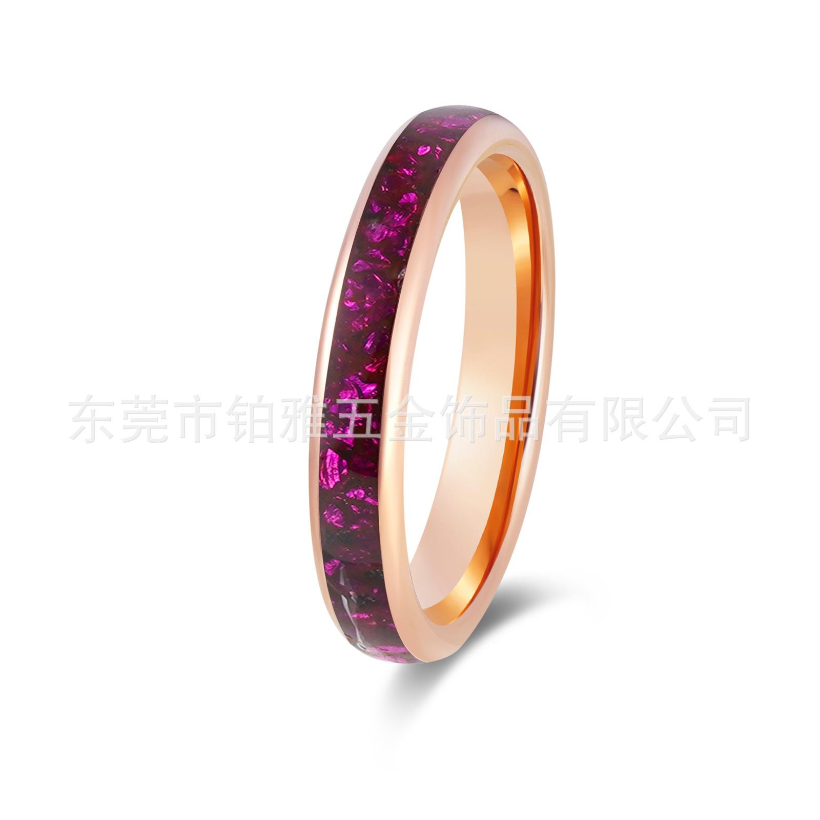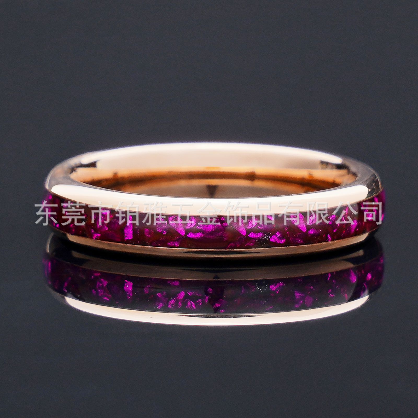 Anillo Nuevo de Acero de Tungsteno Chapado en Oro Rosa Transfronterizo Incrustado con Grava Rosa Estilo Arco Estilo Romántico para Pareja Anillo de Boda