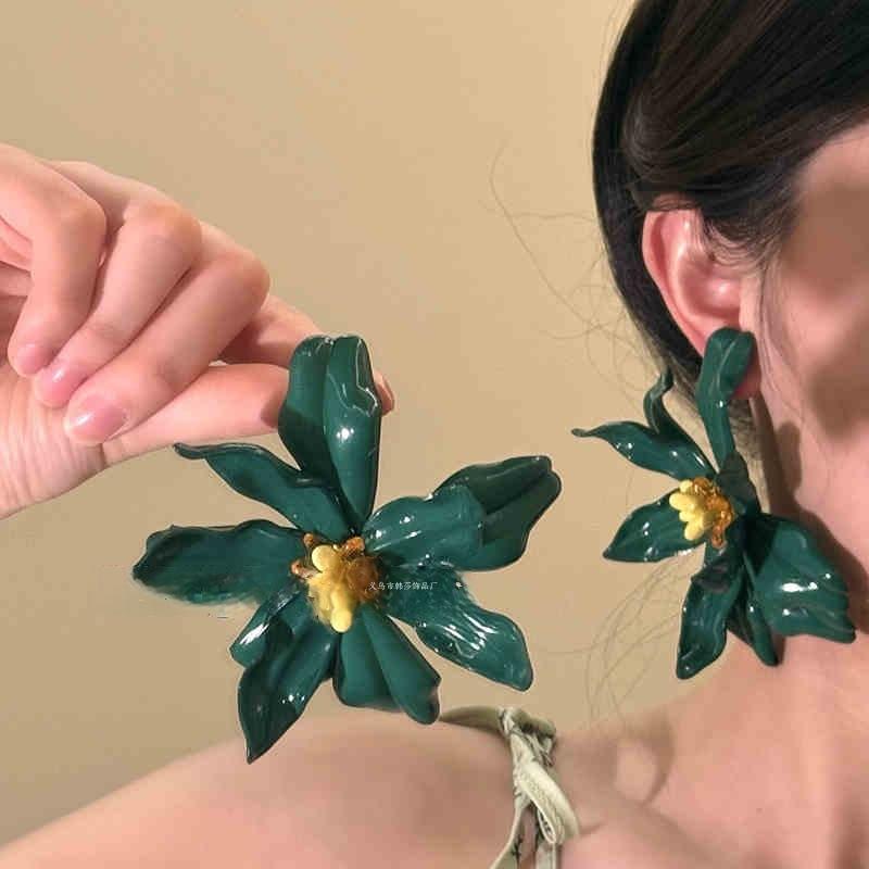 Aretes de flor de cristal irregular aguja de plata personalidad aretes de diseño exagerado aretes de temperamento nicho de moda de alto sentido