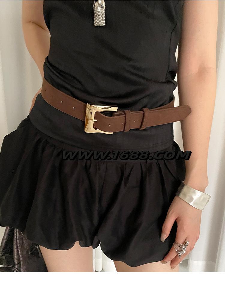 Cinturón de gamuza retro de alta gama para mujer, nicho de personalidad, cinturón ancho de cuero marrón para vestidos, jeans, accesorios de sello de cintura