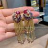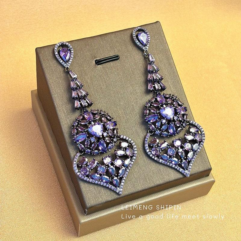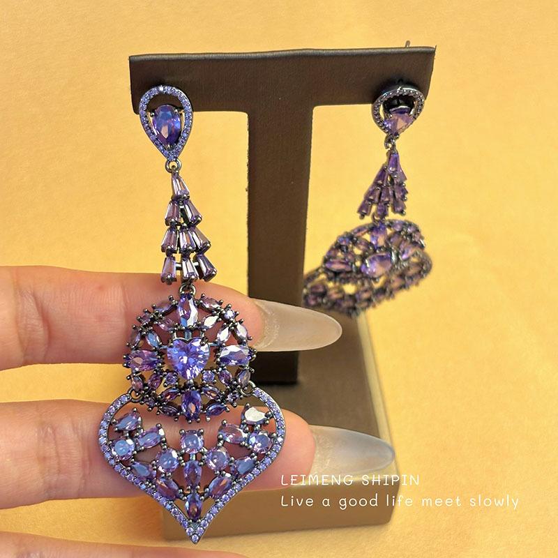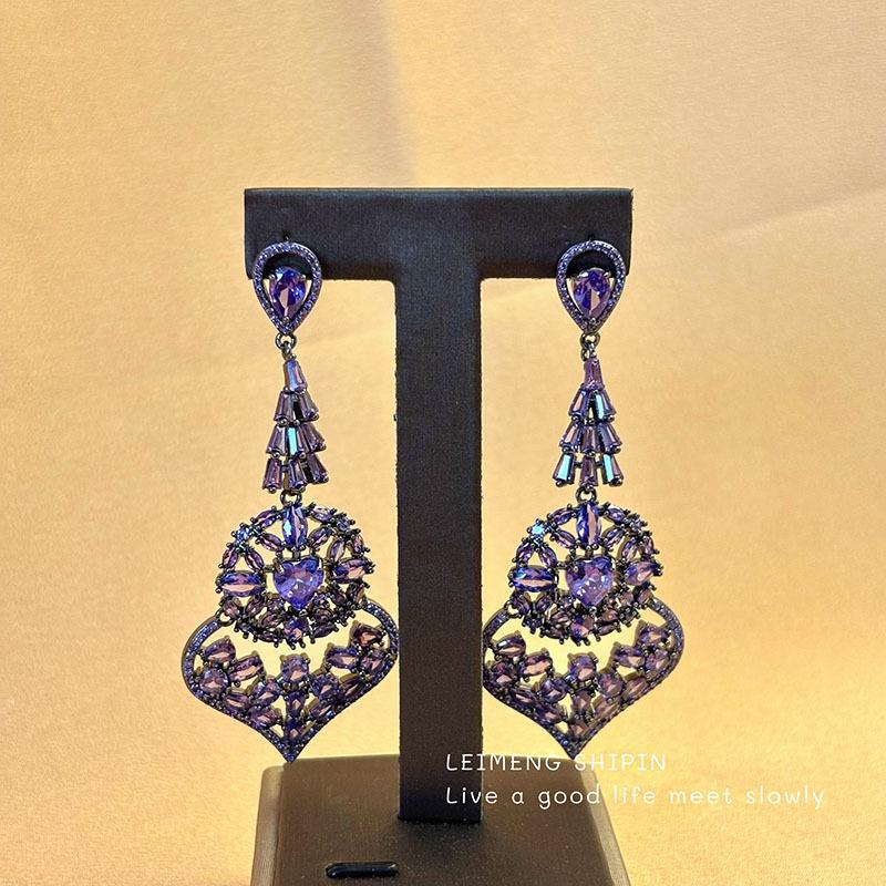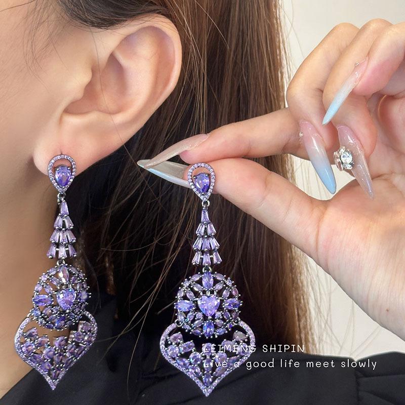Aretes Europeos y Americanos de Industria Pesada Morados con Borlas Largas, Personalidad Exagerada, Geométricos Irregulares de Alta Gama
