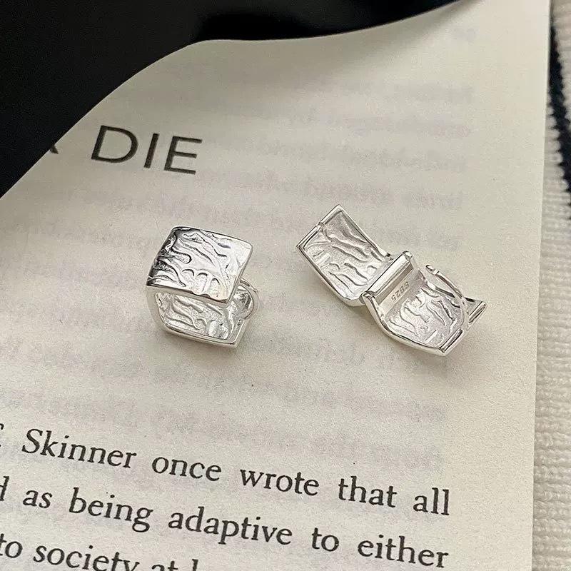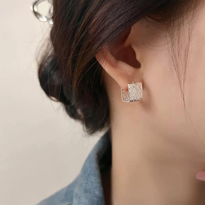 Aretes de Textura Plisada Sentido de Lujo Ligero de Alta Gama Hebilla de Oreja de Lava Cuadrada Nicho para Mujer Simple Estilo Frío Aretes Cuadrados