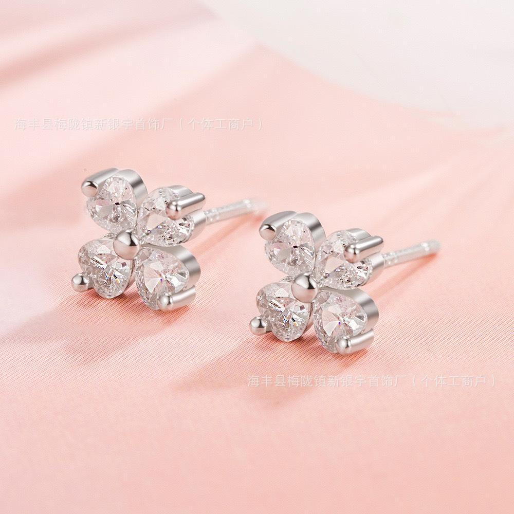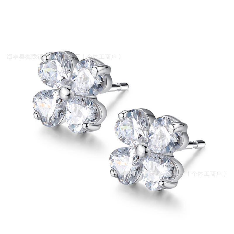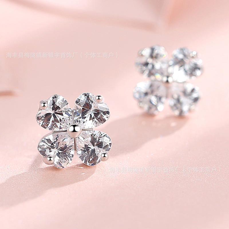 Aretes de Tuerca de Moda Trendy de Trébol de Cuatro Hojas para Mujer Estilo Coreano Aretes de Lujo Ligero Aretes de Gama Alta Venta al por Mayor