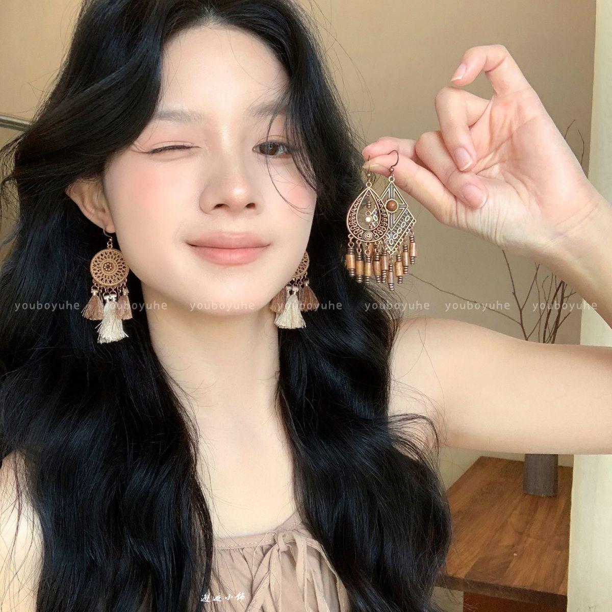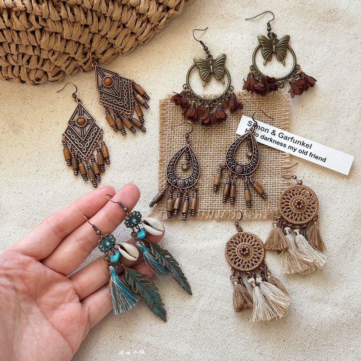 Aretes Largos de Borlas Retro Bohemios para Mujer Diseño Único Estilo Étnico Aretes Colgantes Adecuados para Joyería de Vacaciones